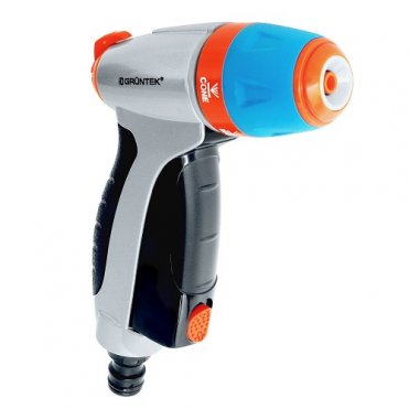 Gruntek 3-х режимний - пістолет для поливу з 3-ма режимами розпилювання. Надійний пістолет призначений для ефективного поливу газону, клумб, чагарників, а також для миття садового інвентарю і техніки, для миття машини, для змивання бруду з сходів і доріжок. Корпус пістолета Gruntek 3-х режимний виготовлений з міцного металу, що забезпечує довгий термін служби інструменту. На рукоятці передбачені прогумовані накладки, які дозволяють пістолету комфортно лежати в руці протягом усього поливу, а також запобігають ковзанню в процесі роботи. Пістолет для поливу легко регулює подачу води з трьома типами струменя: точковий струмінь забезпечує сильний напір для збивання бруду з транспортних засобів, садової техніки; віялове розпорошення для поливу садових рослин; туман - забезпечить легке зрошення ландшафтного дизайну, кущів та ін. Є можливість зафіксувати кнопку включення, що полегшує напругу на руку в процесі поливу. Пістолет для поливу Gruntek 3-х режимний прискорить процес поливу садових рослин, допоможе під силою напору змити навіть закам'яніло бруд з садового інвентарю і допоможе впоратися з іншими побутовими завданнями на дачній ділянці, в саду.Переваги та гарантія