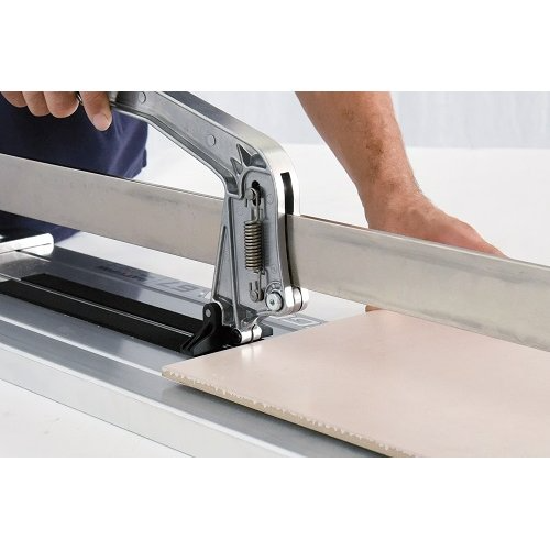 Battipav LEGGERA 137 - ручний плиткоріз для різання плитки «від себе». Розрахований на розріз плитки з максимальною довжиною різу 1370 мм. Призначений для прямої і діагональної різання керамічної плитки і керамограніта. Переваги ручного плиткоріз Battipav LEGGERA 137: алюмінієвий корпус забезпечує легкість при переміщенні, а також жорсткість для точного росного розлому плитки; каретка теж виготовлена з міцного алюмінію з підшипниками, що дозволяє легко і швидко здійснювати рез; шарикопідшипники регулюються для точного розрізу; кутова напрямна дозволяє фіксувати плитку для розрізу по діагоналі; завдяки упору на ріжучої частини розрізана плитка легко відділяється, без сколів; технологія різу «від себе» забезпечує максимальний огляд заготовки та швидкість; обладнана кутовим упором з розміткою, яка дозволяє легко здійснювати діагональний зріз; можливий розріз по діагоналі плитки розміром 965х965 мм; виготовлено в Італії, що гарантує довгі роки професійної роботи. Battipav LEGGERA 137 - зручний плиткорез, який полегшить роботу плиточника, стане незамінним помічником при великих масштабах роботи.Переваги та гарантія