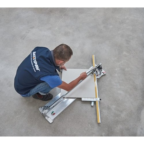 Battipav PROFI EVO 103 ALU - ручний верстат для порізки для підлоги та стін. Розрахований на розріз плитки з максимальною довжиною різу 1030 мм. Призначений для прямої і діагональної різання керамічної плитки і керамограніта. Переваги плиткореза Battipav PROFI EVO 103 ALU: підставу плиткореза виготовлено з міцного алюмінію для довгого терміну служби; лінійка гоніометричний виконана моноблоком, що забезпечує дуже міцну конструкцію, а також дає можливість добре бачити виміри на одному рівні з плиткою; кутова міліметрова лінійка забезпечує рез під кутом до 45 ° С; необмежені можливості - завдяки довгій направляючої смузі можна використовувати плитку розміром 720х720 мм; укомплектований додатковим бічним упором, який переміщається і дозволяє точно розрізати плитку при прямій і діагональної різанні; стільниця обладнана спеціальними пружинами, який дозволяють виконати розлом плитки без різних відколів по шву; ріжучий блок на підшипниках легко ковзає по рейці, а для рівного відрізу ріже частина обладнана упором, який допомагає відокремити відрізані половинки; спеціальна конструкція ніжки з магнітом забезпечує розріз і розлом одним рухом - після розпилу ніжка стає на місце для розлому; упор для розлому також виготовлена з алюмінію і на кінці оснащена спеціальною гумовою накладкою, щоб не було подряпин плитки; бічні упори забезпечують максимальну стійкість Плиткорізи та дають можливість працювати з великими розмірами плитки. Battipav PROFI EVO 103 ALU - надійний ручний плиткоріз для швидкої роботи з плиткою безпосередньо на місці укладання.Переваги та гарантія