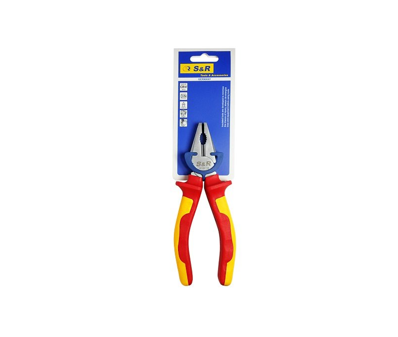 Хром-ванадієві стальні комбіновані плоскогубці S & R для станцій технічного обслуговування і складально-механічного виробництва для виконання робіт під напругою змінного струму до 1000 V. Двокомпонентні прогумовані рукоятки з діелектричного матеріалу. Обробка поверхні - гальванічне покриття фосфатування.Переваги та гарантія