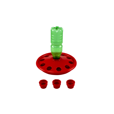 Поїлка для курчат проста у використанні та підходить для всіх типів пляшечок, представлених на ринку. Її можна використовувати в невеликих зграях до 50 курчат протягом перших 6 днів. Поїлка для курчат виготовлена з ретельно відібраного пластику, щоб отримати якісний, функціональний та гнучкий продукт. Вибираючи матеріали, River Systems відповідає всім чинним стандартам захисту здоров'я тварин та охорони навколишнього середовища. Поїлка складається з двох окремих частин, які з'єднані між собою. У верхньому диску є центральний отвір, на який встановлюється пляшка. Поїлка для курчат постачається з 3 адаптерами, кожен з яких має різний діаметр та різьбу, що підходять для різних типів пластикових пляшок. Розмір 10 отворів, з яких п'ють курчата, такий, що вони можуть пити, не намокаючи та не падаючи в поїлку. Крім того, краї закруглені та оброблені, щоб уникнути травмування тварин. Пляшку можна наповнити, витягнувши її з поїлки разом зі вставкою або відкрутивши її. Цей продукт розроблений для того, щоб пришвидшити звичайні операції із заготівлі фермером, заощаджуючи час і ресурси, і водночас дозволяючи тваринам легко втамувати спрагу, забезпечуючи їхнє здоров'я та благополуччя.Переваги та гарантія
