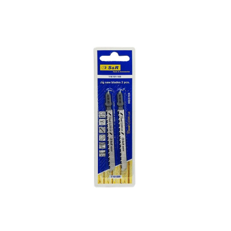 S&R Meister T101BR 2шт. - пиляльне полотно для пиляння дерев'яних і дерево містять матеріалів, таких як ДСП, ДВП, фанера. Використовується з лобзиком для прямого чистого різу. Пилочки поставляються в комплекті з 2 шт. Пиляльне полотно S&R Meister T101BR виготовлено з міцної сталі, завдяки чому пилка не гнеться і виконує точний розріз в деревині. Обладнана Т-хвостовиком і зворотним розташуванням зубів, що дозволяє рівно розрізати дерев'яні заготовки і вироби. Довжина пильного полотна 74 мм, при цьому максимальна глибина пропила 30 мм.Переваги та гарантія