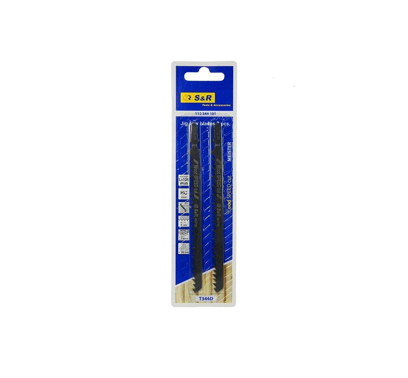 S&R Meister T344D 2шт. - пиляльне полотно для пиляння дерев'яних і дерево містять матеріалів, таких як ДСП, ДВП, фанера. Використовується з лобзиком для швидкого грубого різу. Пилочки поставляються в комплекті з 2 шт. Пиляльне полотно S & R Meister T344D виготовлено з міцної сталі, завдяки чому пилка не гнеться і виконує точний розріз в деревині. Обладнана Т-хвостовиком і гострими зубами, розташованими на відстані 4 мм, що дозволяє швидко розрізати дерев'яні заготовки і вироби. Довжина пиляльного полотна 126 мм, при цьому максимальна глибина пропила 100 мм.Переваги та гарантія