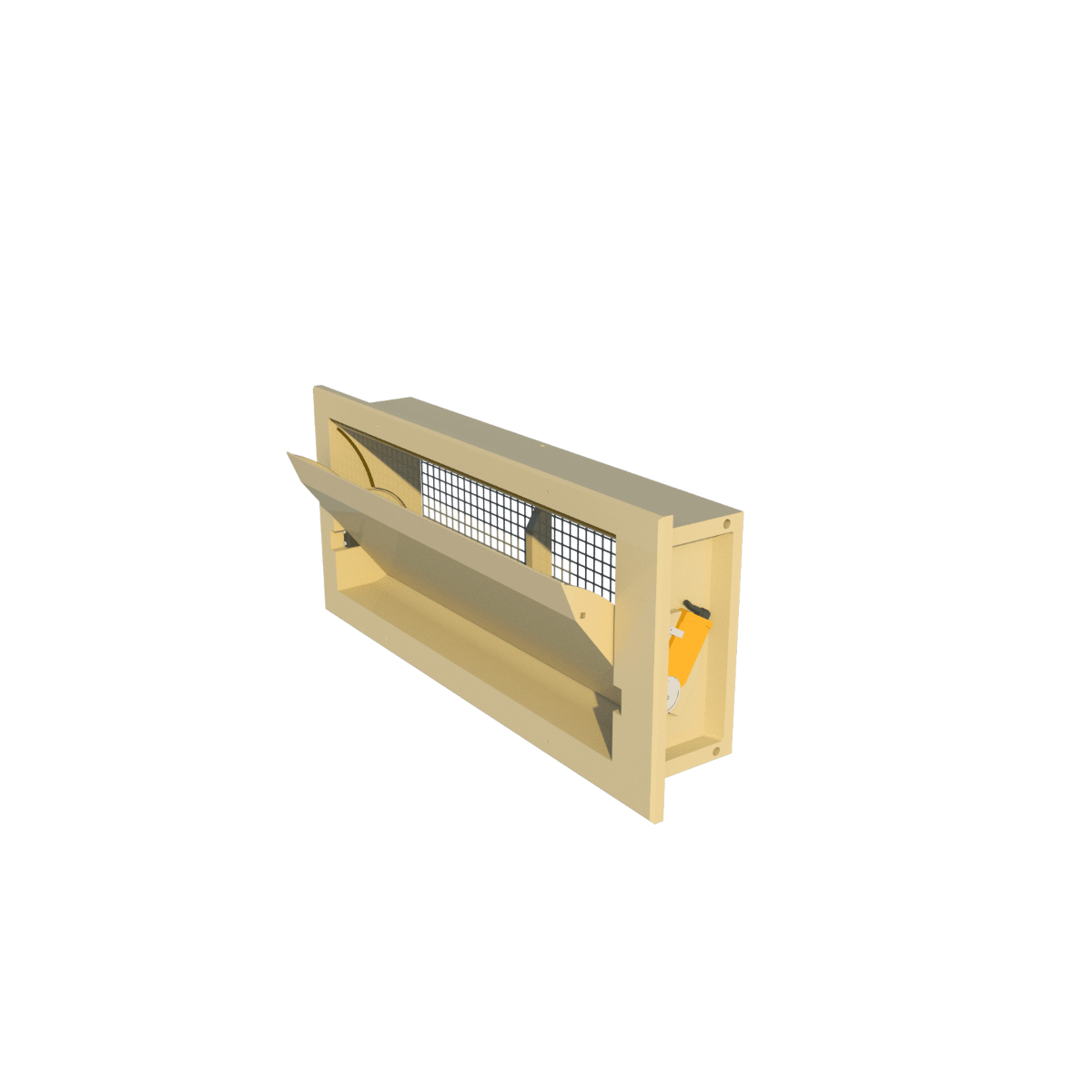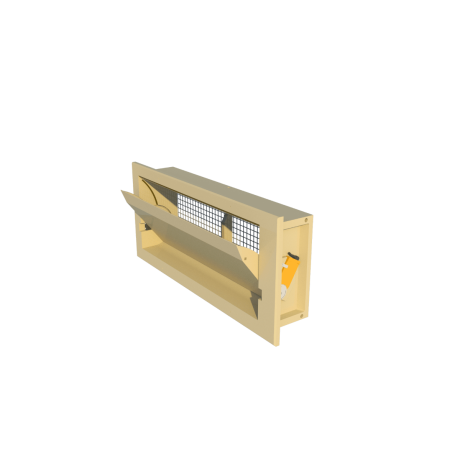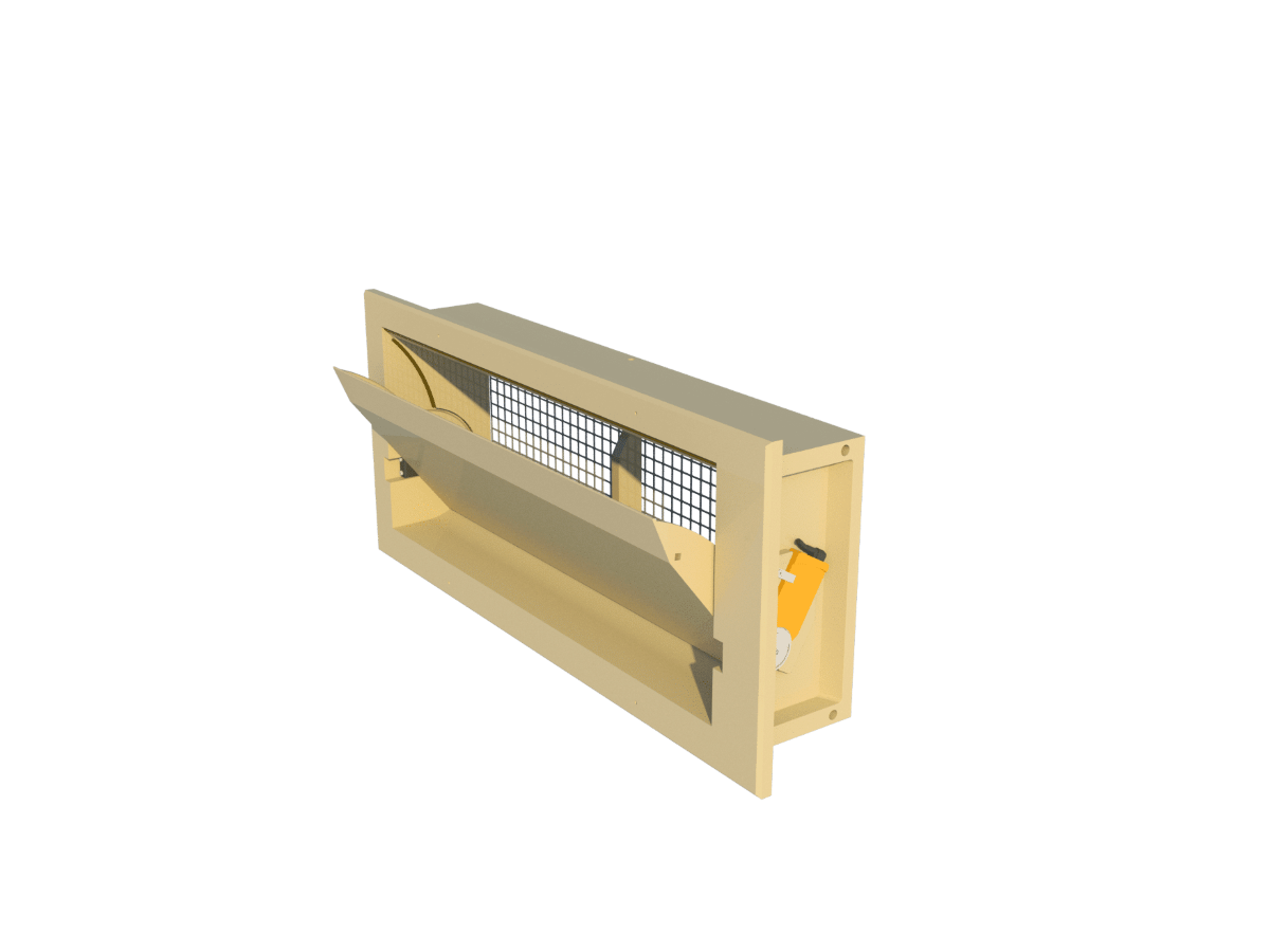 Настінна модель, фланець спереду, пряма внутрішня заслінка. Моторизована. Постачається з двигуном збоку вхідного отвору. Монтажні розміри 900*380 мм, ефективна глибина 160 мм. Продуктивність 2800 м³/год при 10 Па.Переваги та гарантія