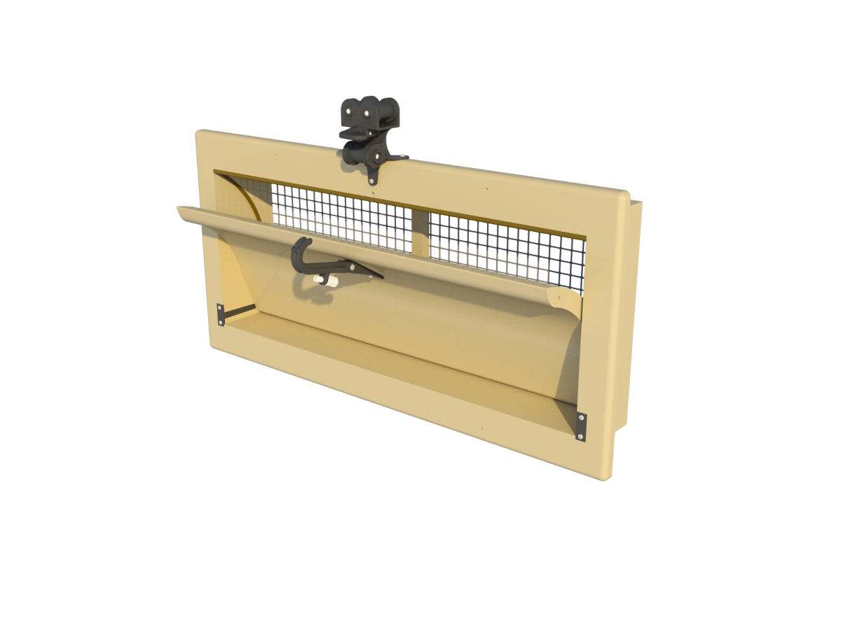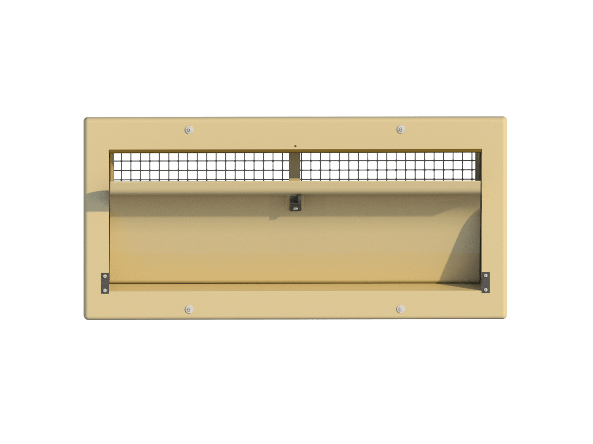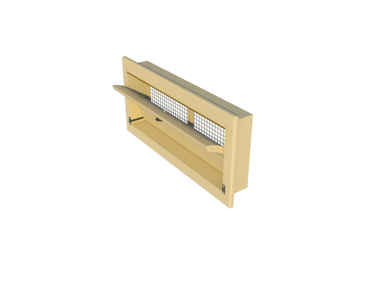 Настінна модель, фланець спереду, сильно вигнута внутрішня заслінка з поворотною заслінкою знизу. Керується за допомогою центрального пластикового важеля. Монтажні розміри 877*393 мм, ефективна глибина 118 мм. Продуктивність 2900 м³/год при 10 Па.Переваги та гарантія