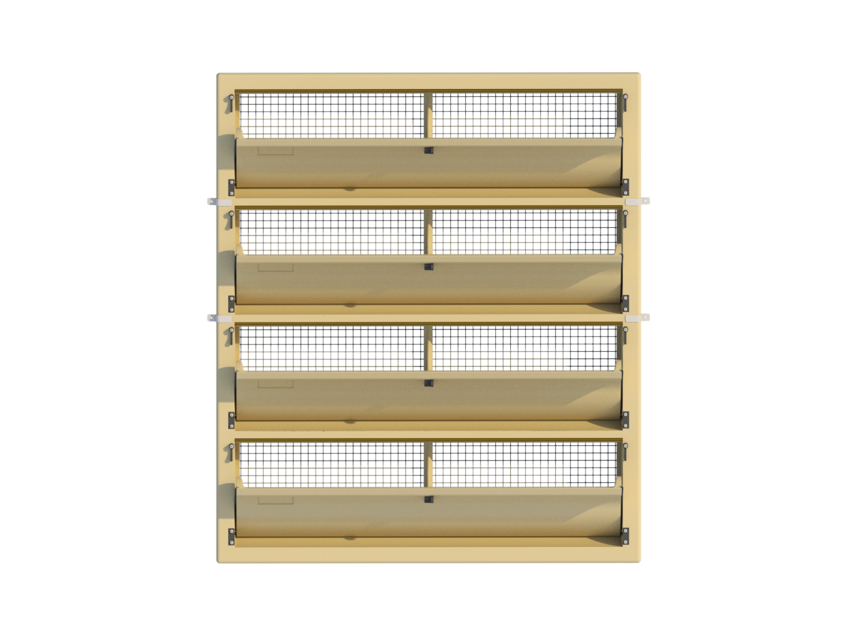 Тунельний блок, що складається з 1 x Ventum-T + 2 x Ventum-M + 1 x Ventum-B. Настінна модель, фланець спереду, вигнута внутрішня заслінка з поворотною заслінкою знизу. Керування за допомогою центрального пластикового важеля на кожному вхідному отворі. Продуктивність 13920 м³/год при 10 ПаПереваги та гарантія