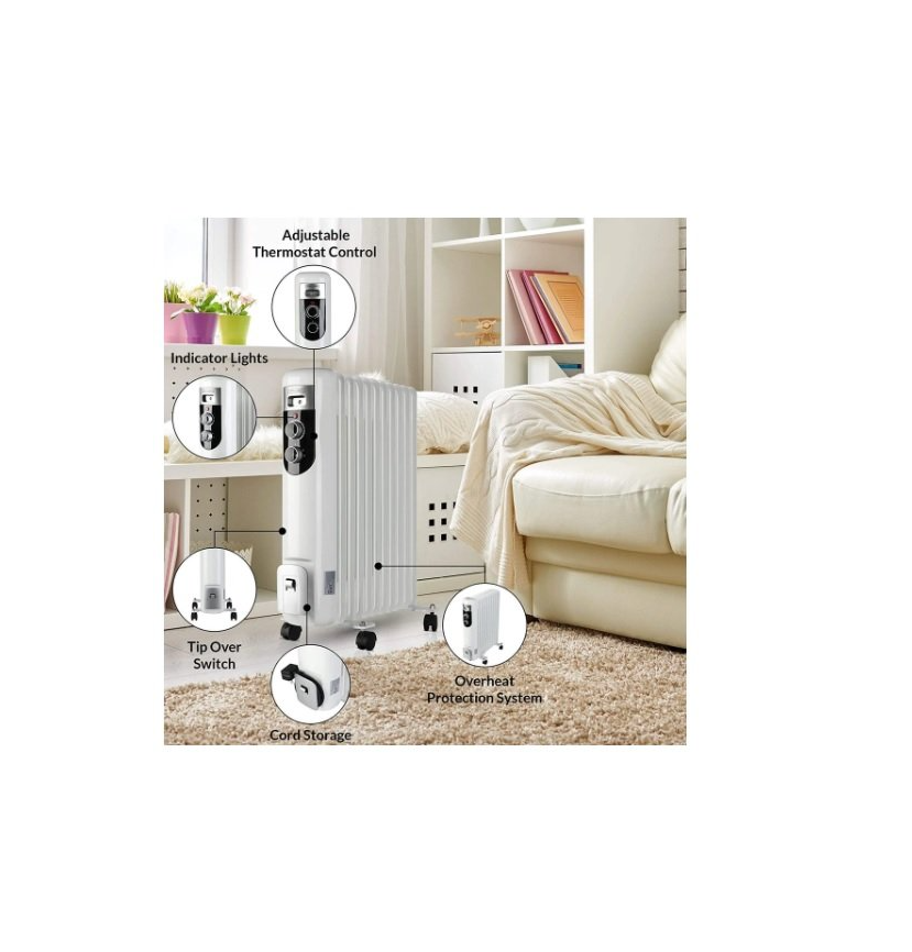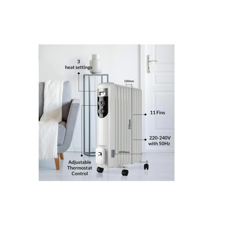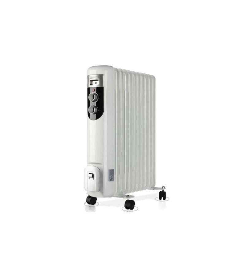Радіатор масляний OLSEN & SMITH OR-01 DRO128M 2,5 кВт - обігрівач для побутових, офісних, складських приміщень. Потужність масляного обігрівача – 2,5 кВт. Він має 11 секцій. Особливості радіатора масляного Олсен Сміт OR-01 DRO128M: • 3 рівні потужності: 1000/1500/2500 Вт. • Наявність термостата для встановлення та підтримання заданої температури. • Індикатор увімкнення – для простого контролю роботи обігрівача. • Захист від перегріву та автоматичне вимкнення при перекиданні. • Наявність поворотних коліс для переміщення масляного обігрівача до місця використання. • Передбачено місце для намотування електрокабелю (довжина кабелю 1,4 м) на корпусі. • Габарити: 455х230х600 мм. • Маса – 8,9 кг. • Завдяки наповненню олією – тривалий час віддає тепло навіть після вимкнення.Переваги та гарантія