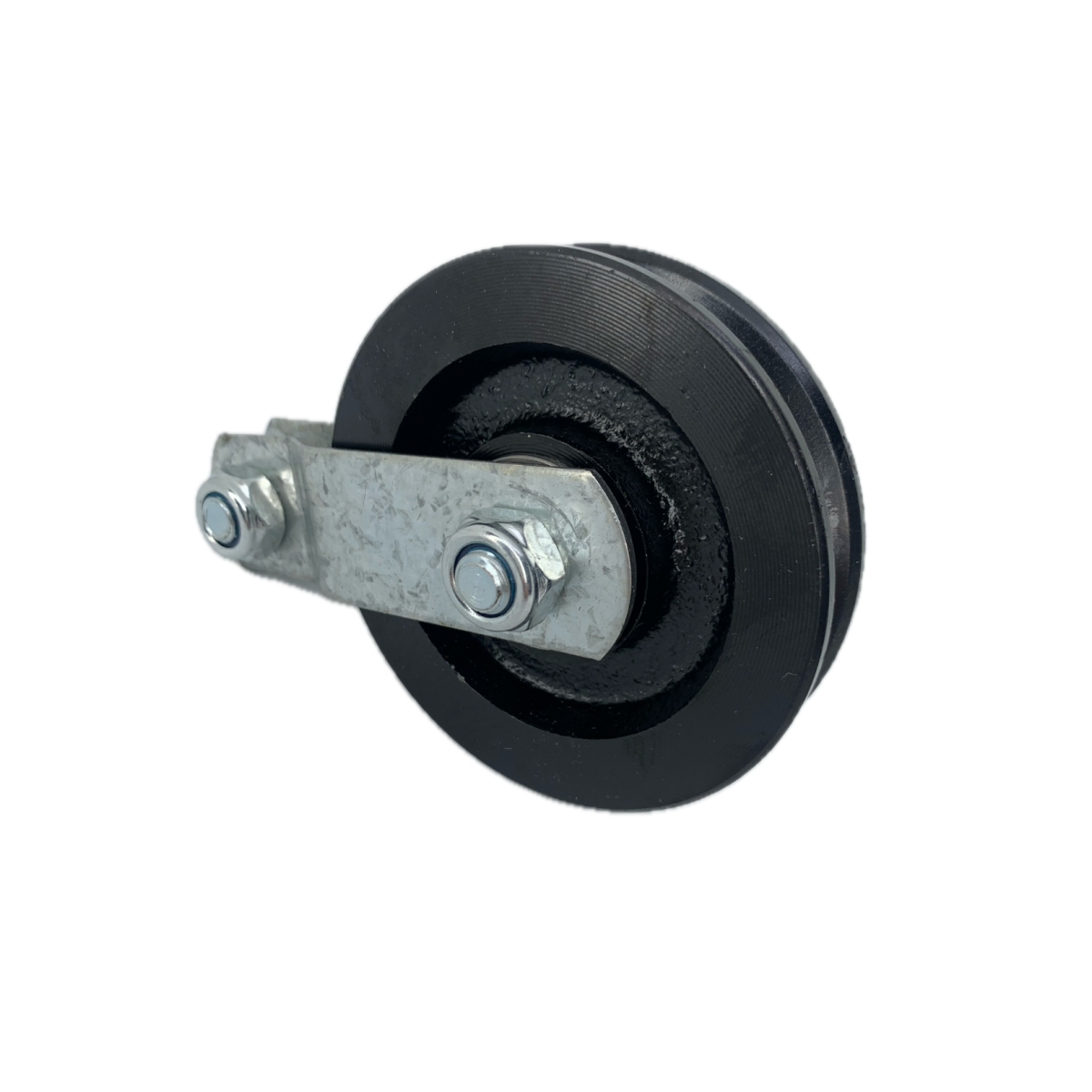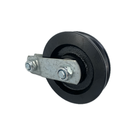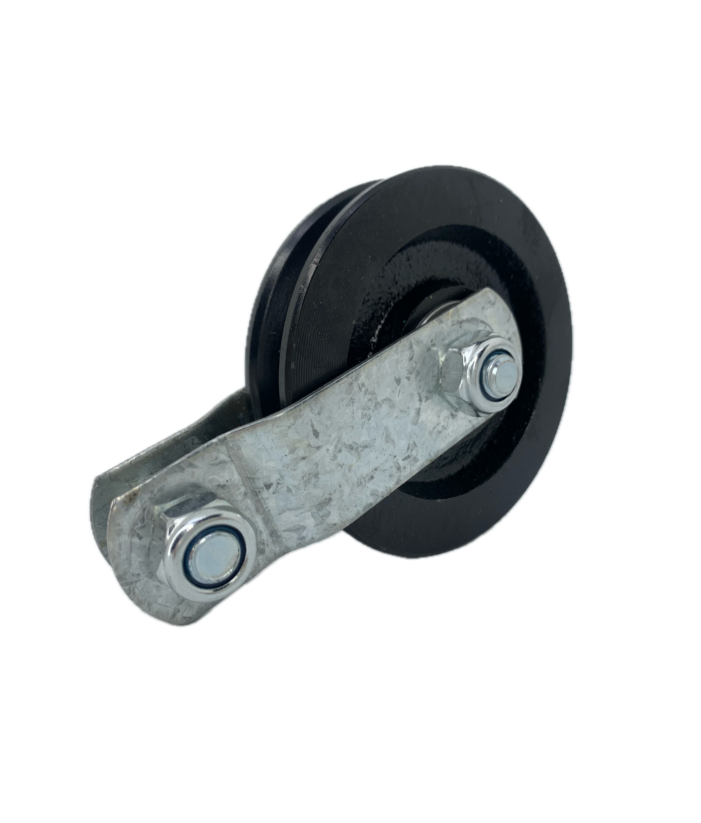 Поворотний ролик чавунний D-90 мм для підвісу троса. Виготовлений ролик із чавуну. Оцинкований кронштейн.Переваги та гарантія