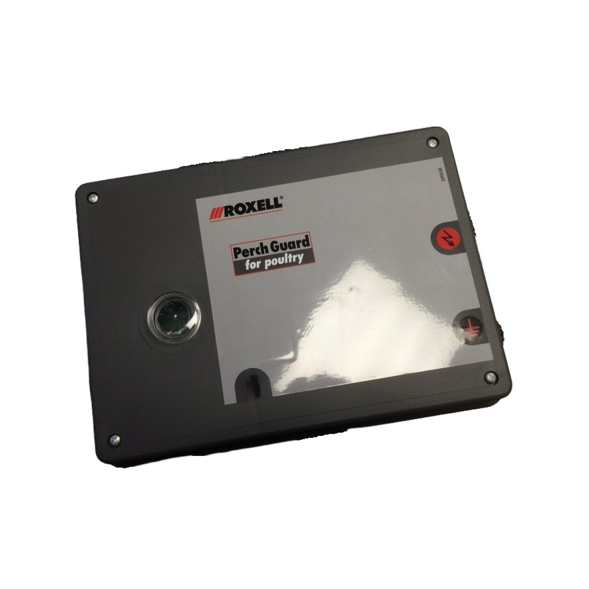 00105692 Захист протинасісту ROXELL Шокер застосовується як антинасісна система в пташниках. Принцип дії даного приладу полягає в подачі імпульсів струму напругою 800В по металевому тросу, натягнутому над лінією напування (лінією годування). Шокер не становить небезпеки для людини, тому що не виробляє небезпечну для здоров'я людини напругу. Струм, що йде по тросу, не небезпечний навіть для молодих курчат, тому що він служить тільки для того, щоб птах не сідав на лінію напування (лінію годування). Максимально ефективний для дорослих курей та інших великих птахів. Шокер дає вам можливість вибору високої або низької вихідної напруги. Світло вказує, що пристрій підключено та працює належним чином. Безперервний змінний струм на виході. Дальність до 1 км за ідеальних умов. Вихідна напруга: 800В змінного струму +/- 20%Переваги та гарантія
