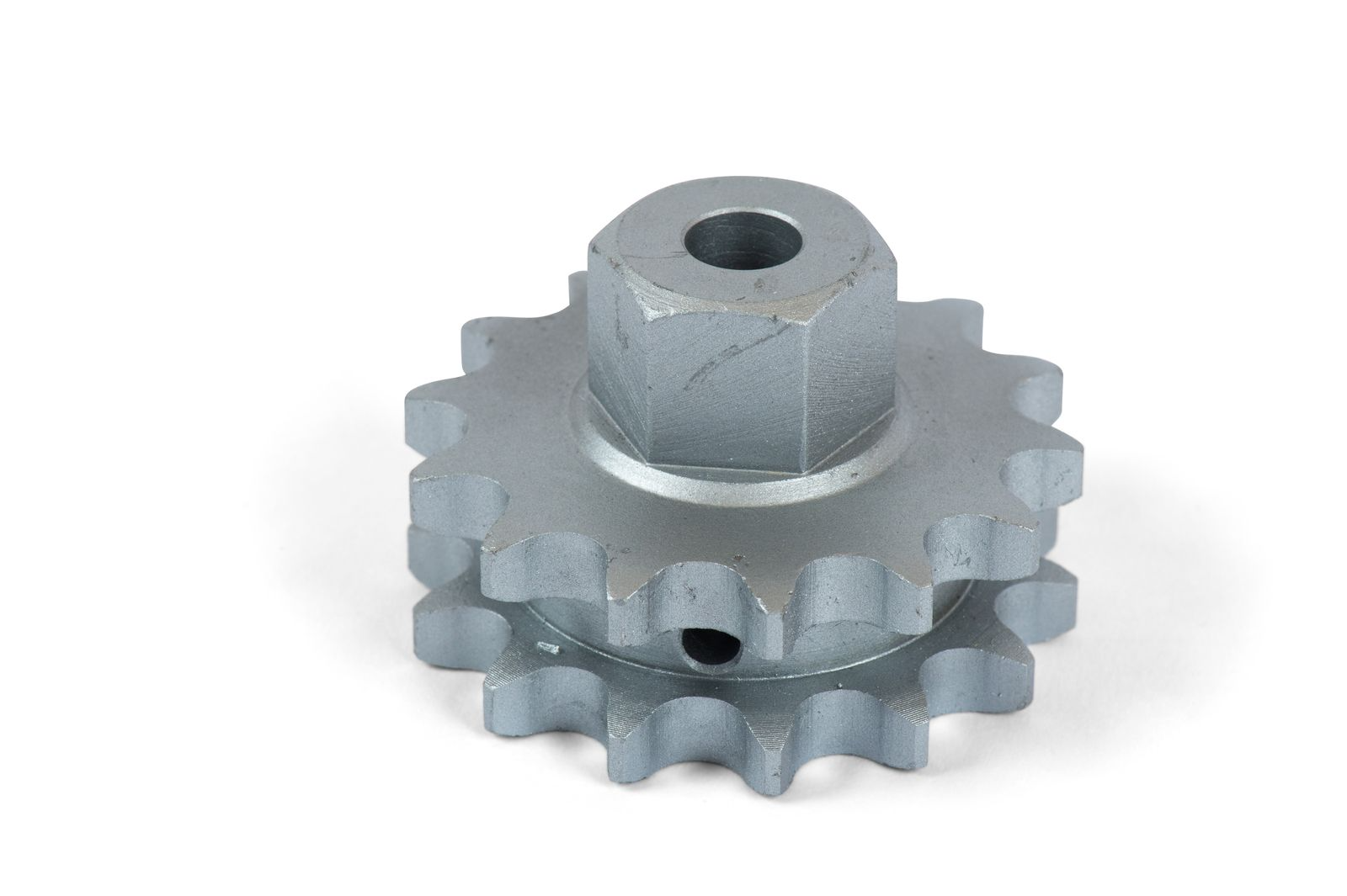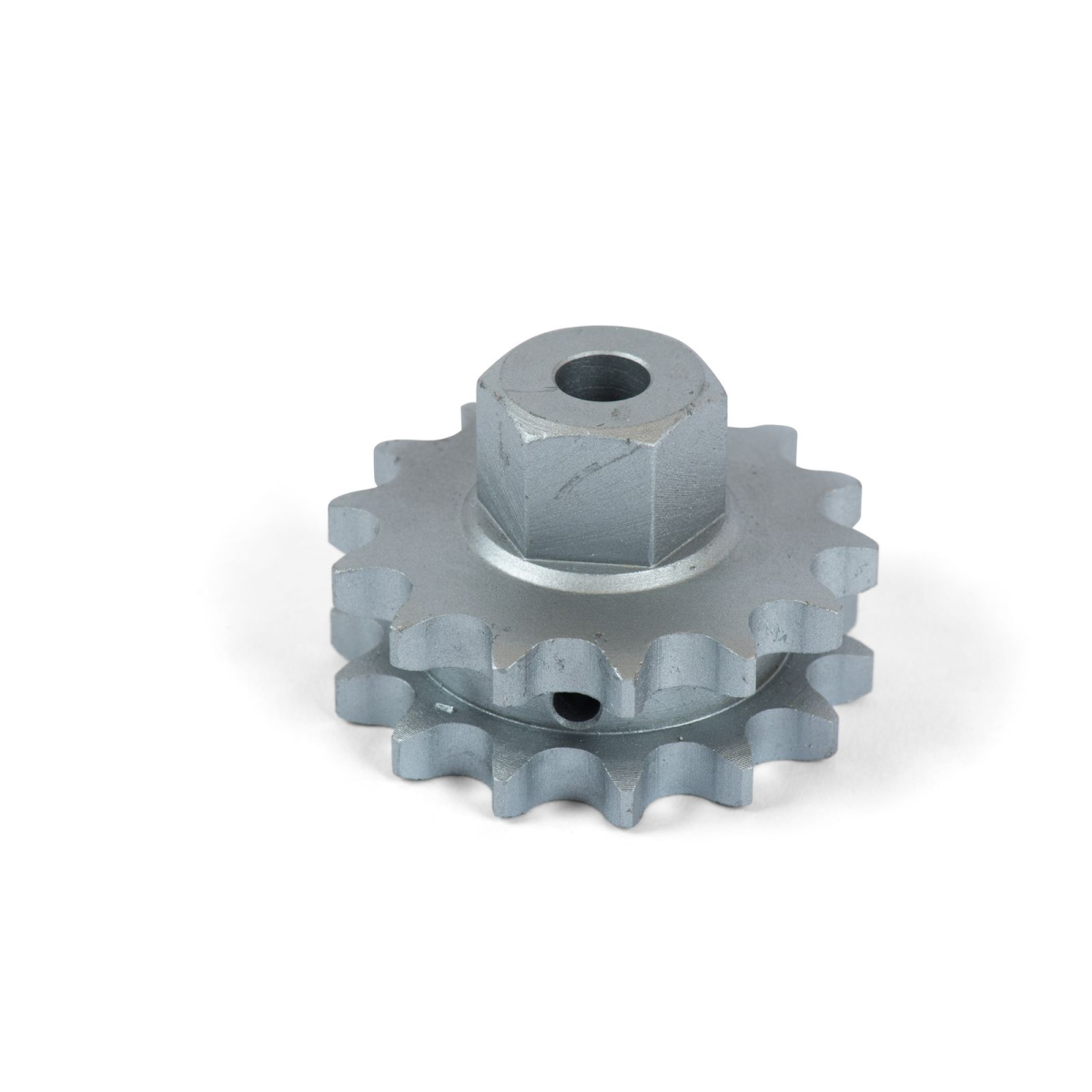 Звездочка двойная для цепи шириной 1/2", 14 зубов, диаметр отверстия для вала 25 мм, с гайкой для поворотного узла ПУ-ленты с цепью арт. 83-03-2175, изготовленная из оцинкованной стали, нелитая (обточенная), устанавливается на вал привода ленточного транспортера по митоудаления, предназначенная для передачи крутящего момента для системы пометоудаления в животноводстве.Преимущества и гарантия
