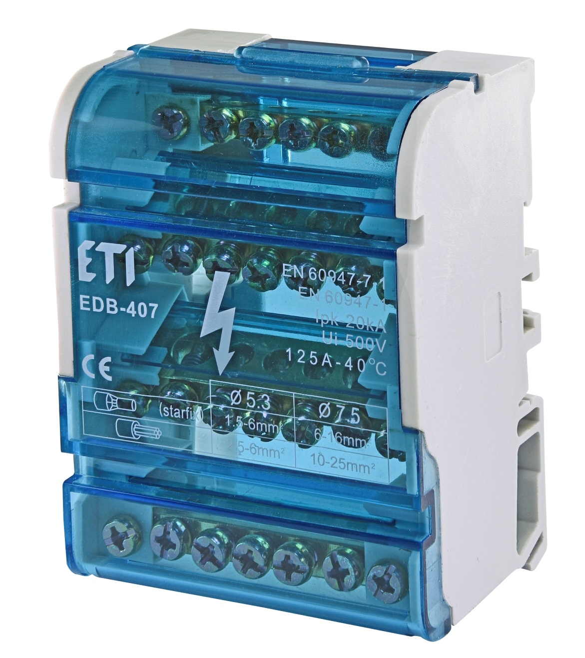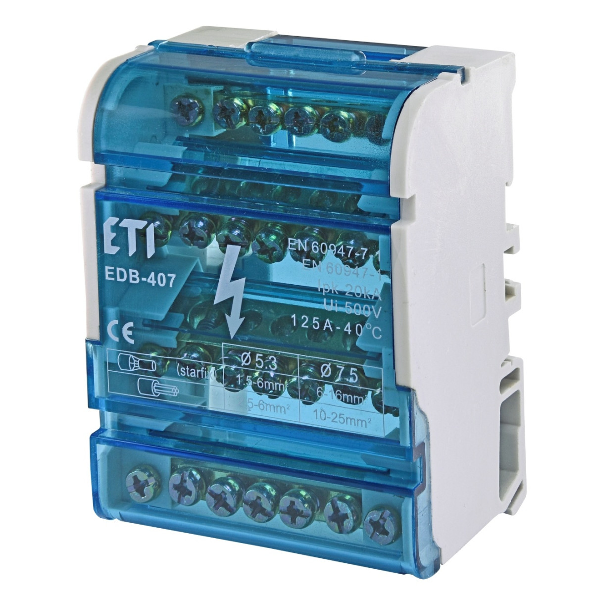 ETI Блок распределительный EDB-407 4p, 3L+PE/N, 125A (7 выходов) ETI EDB-407 – это четырехполюсный распределительный блок с конфигурацией 3 фазы + PE/N, предназначенный для разветвления трехфазных электросетей. Поддерживает до 7 выходов, обеспечивая надежное и безопасное распределение тока до 125 А. Идеален для использования в промышленных, коммерческих и жилых электрощитах.Преимущества и гарантия