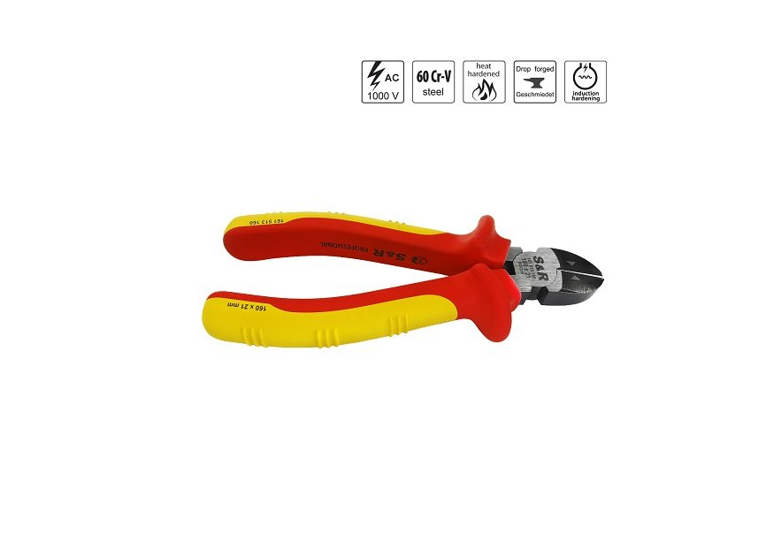 Бокорез S&R из хром-ванадиевой стали шведского типа для станций технического обслуживания и сборочно-механического производства для выполнения работ под напряжением переменного тока до 1000 V. Двухкомпонентные прорезиненные рукоятки из диэлектрического материала для комфортной работы и безопасности работника. Рабочие губки со специальным покрытием для защиты от коррозии. Увеличенная жесткость рабочей части 58-63 HRC позволяет работать инструментом долгие годы.Преимущества и гарантия