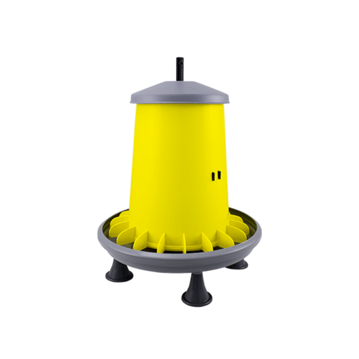 Специальная кормушка с системой предотвращения отходов. Кормушка-бункер ARCUS GYRO 9 л – идеальный инструмент для удобного и безотходного кормления животных. Универсальная и надежная, кормушка идеально подходит как для кормления цыплят, так и взрослых животных. Кормушка-бункер ARCUS GYRO 9 л установлена на вертикальном стержне и перекладине, изготовленных из прочного пластика. Встроенная в стержни система винтовой регулировки позволяет дозировать необходимое количество корма в кормушке. Регулировка осуществляется поворотом цилиндра. Кроме того, инновационная система защелок предотвращает случайное вращение цилиндра, предотвращая изменение настройки животными. Противоотходные клапаны (неотъемлемая часть пластикового цилиндра) специально разработаны для того, чтобы животные могли полноценно питаться. Кроме того, они не дают им выбрасывать корм из кормушки. Фактически, это сразу же экономит корм и делает подстилку чище, так что нежелательные животные не находят разбросанный корм на земле. Кормушка поставляется с крышкой, защищающей корм от грязи. Кроме того, в соответствующие пазы в основании кормушки вставляются 4 ножки, которые приподнимают кормушку над землей, обеспечивая более чистый корм и облегчая кормление взрослых животных. Для кур кормушки следует устанавливать непосредственно на землю. Преимущества кормушки ARCUS GYRO с бункером: пластиковая кормушка, цилиндр и крышка долговечны и позволяют регулировать количество корма в кормушке. Специально разработана для регулирования объёмов при штабелировании нескольких цилиндров и тарелок (при хранении и транспортировке). Отверстие в верхней части стержня позволяет подвешивать кормушку.Преимущества и гарантия