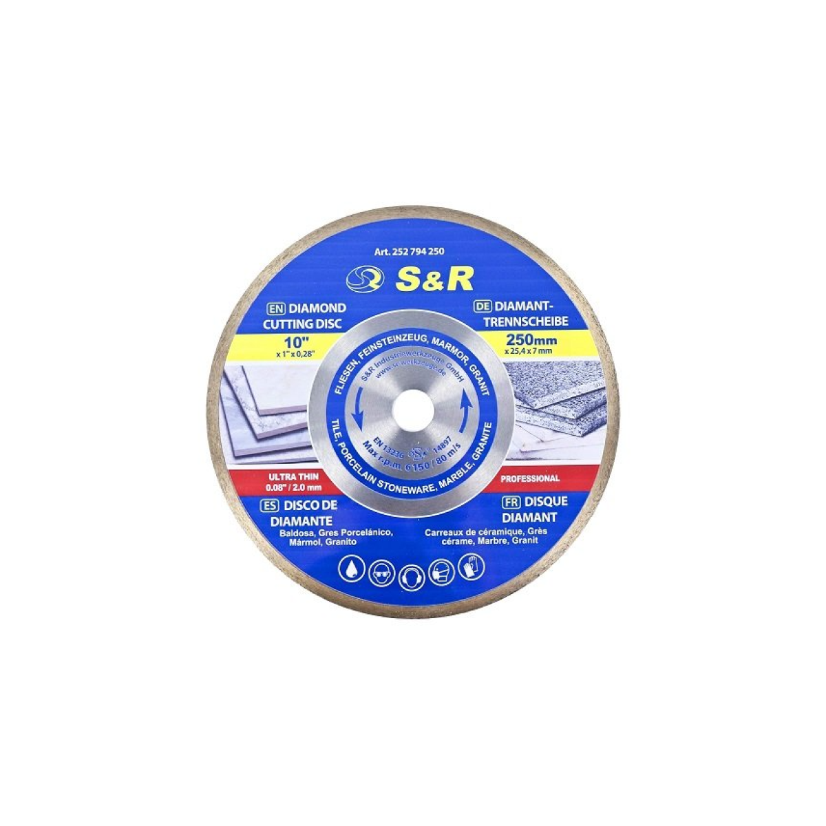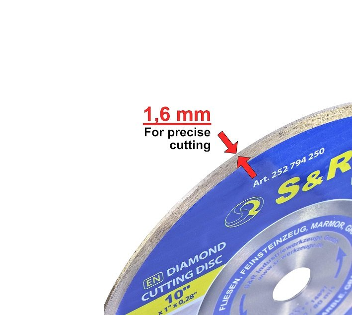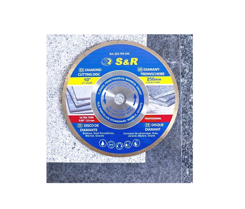 Вопросы Диск алмазный 250 x 1.6 х 25.4 CORONA керамогранит, гранит, мрамор S&R (252794250)