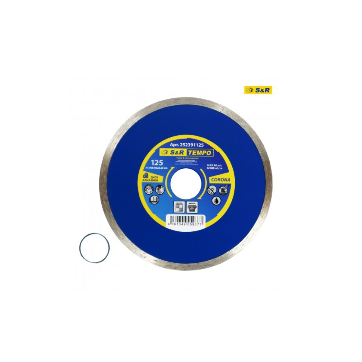 Диск алмазный Tempo 125 x 1.8 х 22.2 CORONA керамика S&R (252391125)