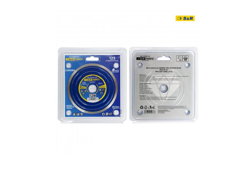 Характеристики Диск алмазный Tempo 125 x 1.8 х 22.2 CORONA керамика S&R (252391125)