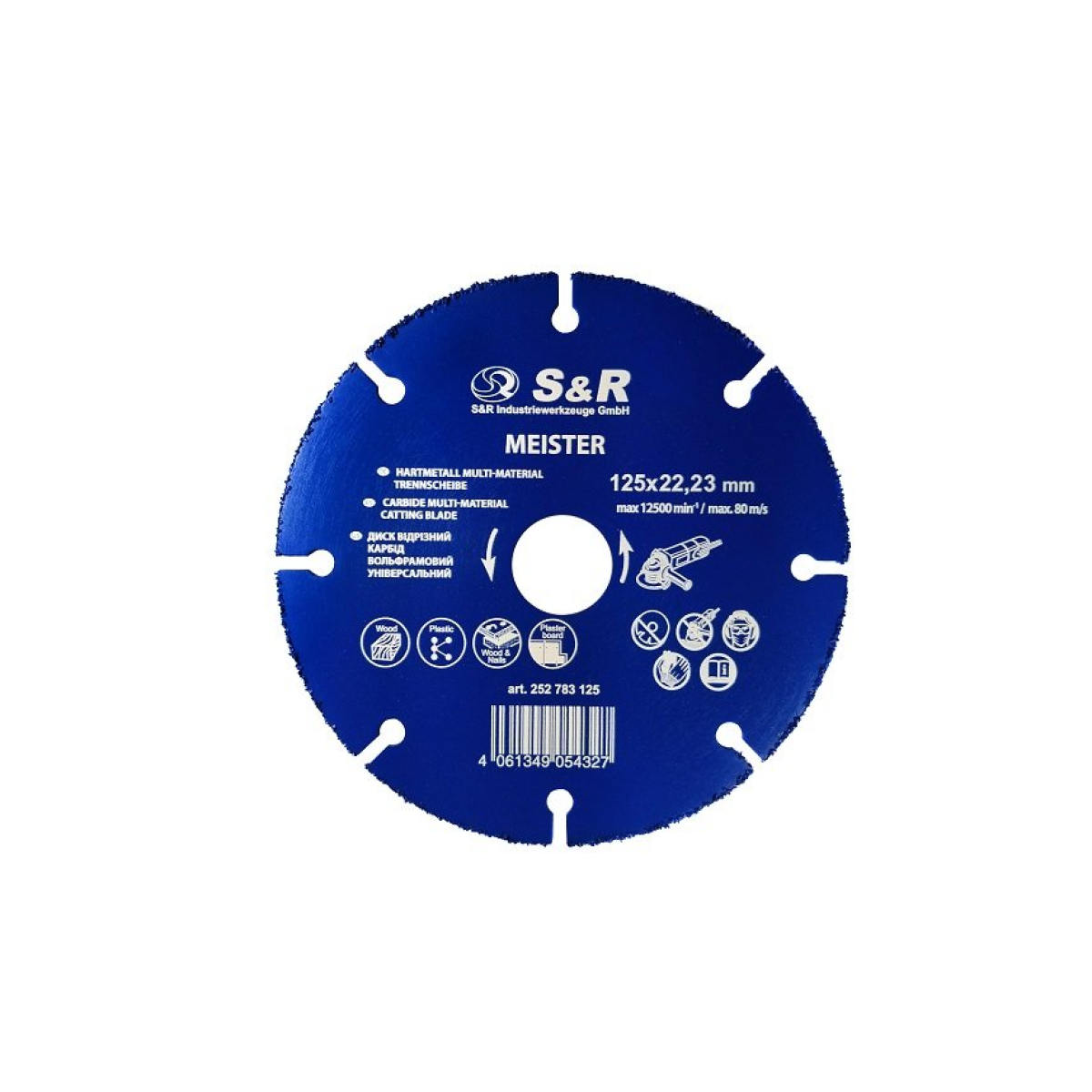 Вопросы Диск карбид вольфрамовый 125 x 22.23мм универсальный (дер.пласт.гипсокартон) S&R (252783125)