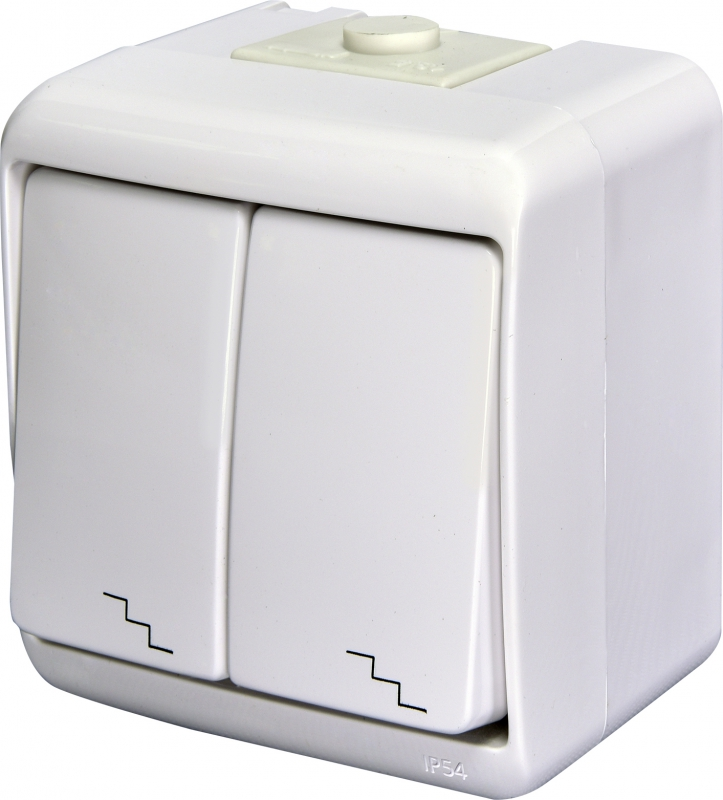 Двухклавишный выключатель "лестничный" ETI VHE-7 (белый, IP54) (004668006)