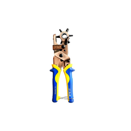 Дырокол S&R Аллигатор предназначен для пробивки круглых, овальных, прямоугольных, отверстий в коже, картоне, толстой ткани, резине, пластике и т.д. Очень удобный инструмент как для домашнего пользования, например, сделать дополнительное отверстие в ремне, для хобби, а также для профессионального использования в мастерских, для ремонта обуви и различных изделий. Чтобы сделать отверстие, нужно выставить штырь нужного диаметра и нажать с усилием на рукоятки. Рабочая часть изготовлена из А3 стали с бронзовым покрытием для длительного срока службы. Рабочая головка оборудована 6-ю штырями разного диаметра и формы: круглые: 3,5 мм, 4 мм, 4,5 мм; Овальный: 6,1х4 мм; Прямоугольные: 6,6 х3, 1 мм, 7,5 х3, 6 мм. Эргономичные рукоятки смягчают нагрузку на руки в процессе нажатия. Удобны для увлечения и не скользят во время работы. Рукоятки оборудованы специальной петлей, позволяющей держать инструмент в сложенном состоянии.Преимущества и гарантия