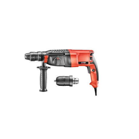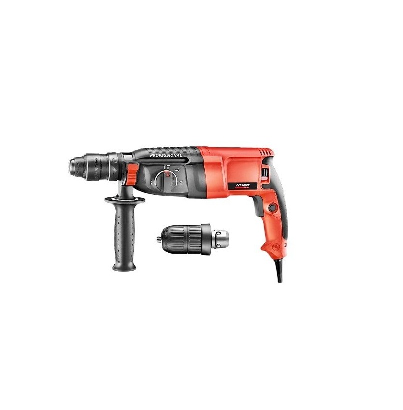 Stark RH-920 Q Profi - электрический перфоратор предназначен для сверления, сверления с ударом и долбления. Перфоратор может быть использован при работах средней тяжести в режиме долбления камня, горных пород, бетона, кирпича, а также для сверления древесины, металла и пластмассы. Преимущества перфоратора Stark RH-920 Q Profi: увеличенная мощность позволяет выполнять тяжелые работы, не перегружая двигатель; комплектуется дополнительным быстрозажимным патроном, который дает возможность быстро менять расходный инструмент; надежные подшипники ии редуктор обеспечивают долгий срок эксплуатации; удобное переключение режимов с помощью колесика ускоряет работу; рукоятка с гашением вибрации обеспечивает комфортную работу не смотря на силу удара; прорезиненные накладки на рукоятках предотвращают скольжение для Перфоратор Stark RH-920 Q Profi комплектуется: дополнительным быстрозажимным патроном; боковой рукояткой; глубиномером; пикой; долотом; бурами; кейсом. Приобретая перфоратор Stark RH-920 Q Profi, Вы приобретаете надежный инструмент для выполнения работ на профессиональном уровне.Преимущества и гарантия