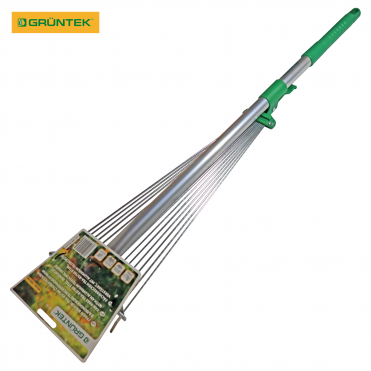 Грабли веерные GRUNTEK TRA-83/160 стальные с алюминиевой ручкой – предназначены для сбора листьев, скошенной травы, мелких веток и прочего садового мусора. Модель – универсальная в использовании благодаря регулируемой ширине рабочей части от 190 мм до 585 мм и изменяющейся длине ручки. Другие особенности веерных граблей Грюнтек TRA-83/160: Грабли изготовлены из прочной стали, а ручка – из алюминия, благодаря чему инструмент имеет меньшую массу и при этом обладает высокой прочностью, износостойкостью. Модель имеет 15 стальных зубцов-прутьев диаметром 2,8 мм с плоским окончанием. Плоская часть проволоки имеет ширину – 4,2 мм. Стальная ручка состоит из 2 секций и имеет диаметр 22 и 25 мм (диаметр каждой секции разный). Ее длину можно регулировать в пределах – 830-1600 мм. Наличие удобной пластиковой накладки в конце ручки. Накладка имеет отверстие для подвешивания грабель на крючке. Небольшая масса – 670 граммов. Габариты в упаковке: 20х88х5,5см. Гарантия – 12 месяцев. Страна бренда: Германия. Страна-производитель: Китай.Преимущества и гарантия
