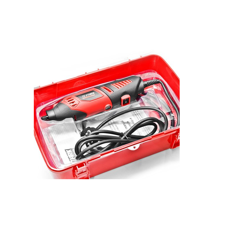 Stark MG-18218 - для выполнения качественных работ по гравировке, шлифованию, полировке, зачистке и других работ с деревом, металлом, стеклом и керамикой. Преимущества гравера Stark MG-18218: увеличенная мощность инструмента обеспечивает более высокую производительность и максимальную скорость; регулировка скорости позволяет эффективно и качественно выполнять работу с различными насадками и различными типами материала; многофункциональный инструмент за счет множества насадок в комплекте - 218 шт.; оснащен металлической скобой, благодаря которой удобно зацепить инструмент за ремень или подвесить на крючок; легко работать в труднодоступных местах благодаря гибкому валу, который позволяет маневрировать инструментом и выполнять работу под удобным углом; быстрая смена насадок дает возможность быстро приступить к следующему этапу работы; прорезиненный кабель длиной 2 метра не сковывает движения в процессе работы и позволяет работать на достаточно большом расстоянии от розеток; поставляется в кейсе, в котором компактно размещается инструмент с насадками для удобного хранения и перевозки. Гравер электрический Stark MG-18218 комплектуется: насадки - 218 шт.; кейс. Stark MG-18218 - компактный гравер, который удобно ложится в руке и обеспечивает точную работу с деталями.Преимущества и гарантия
