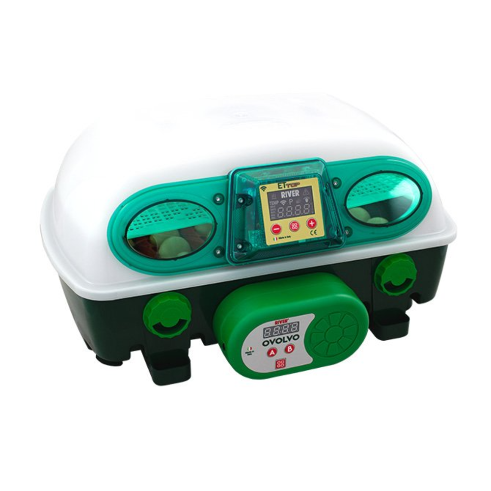 Инкубатор, подключенный к сети Wi-Fi. Сетевой инкубатор для яиц "ET TOP 24" – новинка в мире инкубаторов. Его многочисленные функции можно настраивать и контролировать по Wi-Fi через бесплатное приложение River CovApp для смартфонов или с помощью собственной панели управления. ET TOP оснащен 8 предустановленными программами, разработанными нашими специалистами для инкубации яиц основных пород птицы, но вы можете создать свои собственные с помощью нашего приложения. Ручной режим позволяет опытным пользователям настраивать все параметры по своему усмотрению. River CovApp позволяет отслеживать все процессы инкубации, предоставляя полезные ежедневные оповещения. Кроме того, инкубатор может сохранять все данные инкубации. Приложение доступно для Android в Google Play Store и для iOS в App Store на итальянском, английском, французском, испанском, немецком и русском языках. Сетевой инкубатор позволяет: отображать процент влажности внутри инкубатора и, при наличии системы Nebula, также управлять ею; регулировать угол наклона, скорость и частоту ежедневных колебаний яиц с помощью Ovolvo. Отображение и выбор предустановленных программ, которые, в зависимости от типа животного, обеспечивают оптимальное и автоматическое управление инкубатором. Инкубатор ET TOP и его аксессуары (Ovolvo и Nebula) полностью программируются дистанционно через River CovApp. Вместимость: 24 средних/крупных яйца или 96 мелких яиц (например, перепелиных). Информация о продукте. Удаленное онлайн-управление через Wi-Fi и River CovApp. Освещение: Возможность подсветки внутренней части инкубатора через CovApp или с помощью панели управления инкубатора. Облегчает контроль состояния яиц и цыплят через смотровые окна. Подсчёт дней: Дисплей отображает количество дней инкубации для оптимального управления всеми фазами. Скорость турбины: Возможность регулировки скорости турбины до 5 различных значений для достижения наилучших результатов вывода. Температура регулируется в диапазоне от 25°C до 40°C. Сигнализация. ET TOP оснащён визуальными и звуковыми сигналами, которые сигнализируют о любых неисправностях, позволяя своевременно вмешаться. Сигналы тревоги также передаются через приложение River CovApp.Преимущества и гарантия
