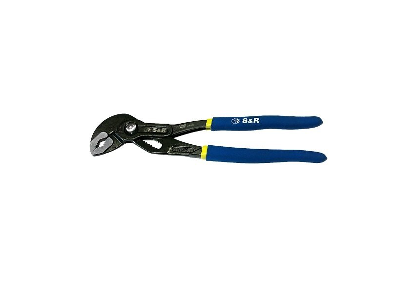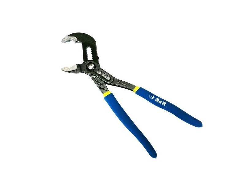 S&R 240х30 мм – переставные клещи с рамочным механизмом и кнопкой фиксации. Предназначены для крепкого захвата деталей, водопроводных и газовых труб при выполнении ремонтных, строительных и сантехнических работ. Рабочая часть изготовлена из хром-ванадиевой стали методом ковки, благодаря чему инструмент обладает прочностью для крепкого захвата. Фосфатное покрытие обеспечивает долговечность и защиту от внешних факторов, предотвращает повреждение от коррозии. Инструмент прошел индукционную и термическую закалку, а также зубцы прошли шлифовку для точного захвата без соскальзывания. Рукоятки с ПВХ покрытием обеспечивают удобную работу в течение длительного времени, смягчают силу давления на руки. Рамочный механизм позволит быстро изменить диаметр захвата, а кнопка фиксации обеспечит надежный зажим детали.Преимущества и гарантия