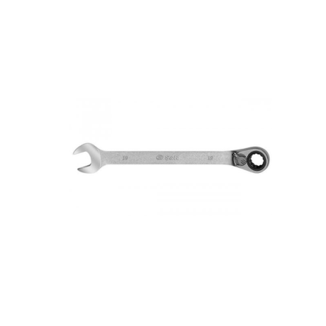 Ключ гаечный комбинированный трещеточный S&R для уборочного механического производства, станций технического обслуживания. Материал – хром-ванадиевая сталь. Обработка поверхности – полировка, матирование. Конструктивные особенности – механизм трещотки 72 зуба, единичный угол поворота 5°.Преимущества и гарантия
