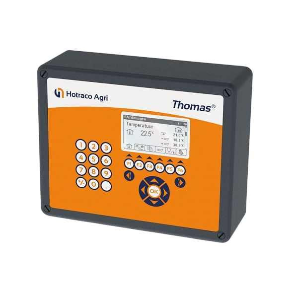 Контроллер климата Thomas Climate 1 комната с CAN-IO-7-7 и цифрами. клавиатурой встр. панель THOMAS-CL2-PE (HO05084017) Линия Thomas Climate включает в себя ряд продуктов для идеального управления климатом в каждом отдельном помещении. Thomas контролирует климат в пределах от одного до двенадцати помещений. Он регулирует, в частности, вентиляцию, приток воздуха, отопление, охлаждение и освещение. Кроме того, Thomas Climate может управлять различными центральными функциями, такими как центральная вытяжка, центральная приточная вентиляция, центральное отопление и т. д. Компьютеры Thomas Climate имеют множество входов и выходов, которые могут быть гибко назначены. Например, можно подключить датчики температуры, влажности, отрицательного давления, NH3 и CO2. На основе измеренных значений Thomas Climate создаст правильный климат в для ваших животных. При желании можно выбрать различные фазы, такие как выезд, замачивание, очистка, сушка и прогрев, и Thomas Climate обеспечит выполнение заданной программы для каждой фазы.Преимущества и гарантия