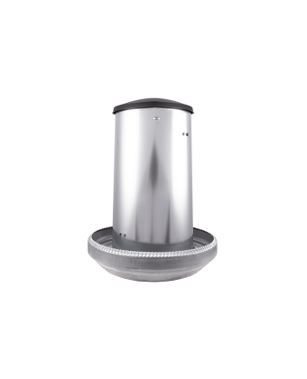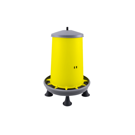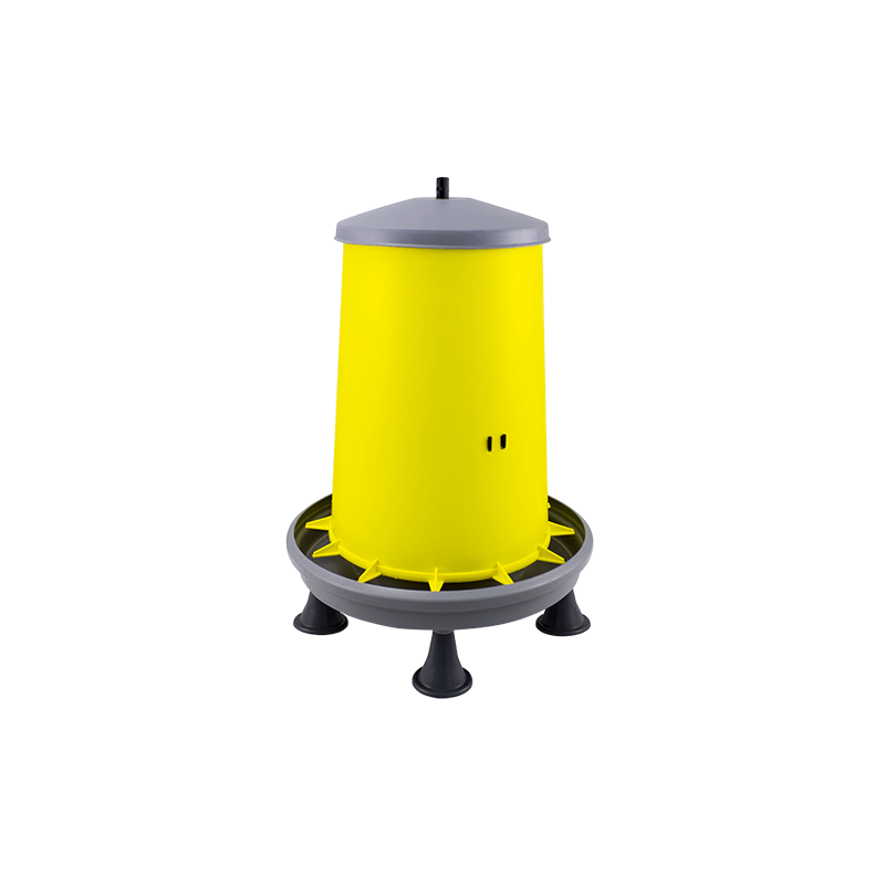 Кормушка-бункер объёмом 20 л с пластиковым стержнем с резьбой и ножками. Кормушка-бункер с центральным пластиковым стержнем с резьбой и шипами отлично подходит для кормления взрослых животных. Она опирается на вертикальную стойку и перекладину. Обе перекладины изготовлены из прочного пластика. Стержень и перекладина оснащены системой крепления, которая позволяет регулировать количество корма в миске, поворачивая цилиндр на нужную высоту. Кроме того, инновационная система защёлок предотвращает случайное вращение цилиндра, не позволяя животным изменить заданную регулировку. Отверстие в верхней части стержня позволяет подвешивать кормушку. Кормушка поставляется с крышкой, защищающей корм от грязи.Преимущества и гарантия