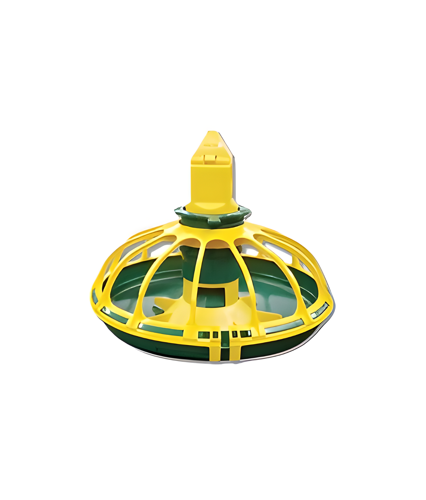 Kормушка для бройлера FUZE ProLine имеет ряд особенностей для эффективного кормления птицы. Кормушка изготовлена из крепкого полимерного пластика, что повышает износостойкость и сокращает возможное размножение бактерий. FUZE ProLine подходит как для рассыпчатого корма, так и для разных типов гранул. Большой диаметр поддона обеспечивает большой фронт кормления – до 111 см. Три больших окна для быстрого наполнения кормушки кормом. Специальная конструкция борта поддона и решетки препятствует рассыпанию корма. Поддон с V-образным углублением облегчает доступ к корму цыплят. Легкая и точная регулировка уровня наполнения кормушки кормом.Преимущества и гарантия