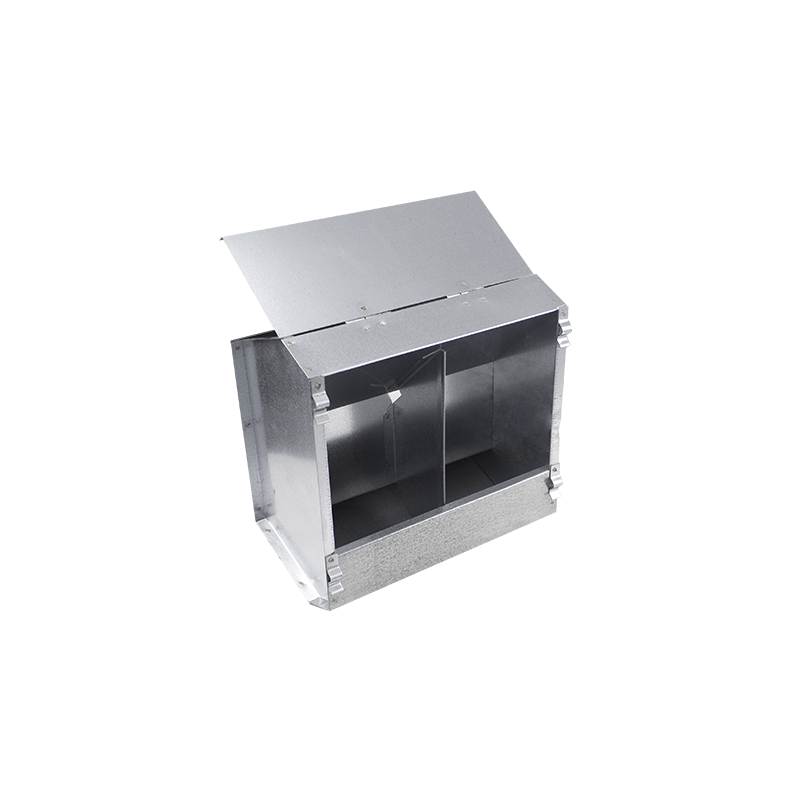 Кормушка-бункер с двумя большими отделениями и крышкой для кроликов. Кормушка-бункер с крышкой для кроликов и других подобных животных, полностью изготовленная из оцинкованного листового металла. Имеет два «больших» отделения и может крепиться к клетке или сетке ограждения. Перфорированное дно.Преимущества и гарантия