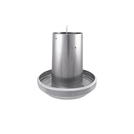 Кормушка-бункер 18-40 с цельным центральным прутком для индеек. Кормушка-бункер из оцинкованного металла с регулируемым цельным прутком и крышкой. Цельный прут предотвращает скопление бактерий из-за возможного скопления корма. Он также облегчает очистку и сокращает время уборки. Она больше классической кормушки арт. 126, поскольку цилиндр кормушки объёмом 22 л объединён с пластиной кормушки объёмом 37 л, что даёт животным больше места для кормления. Благодаря 6 отверстиям на пруте можно регулировать количество корма в миске. В верхней части прута имеется отверстие для подвешивания кормушки.