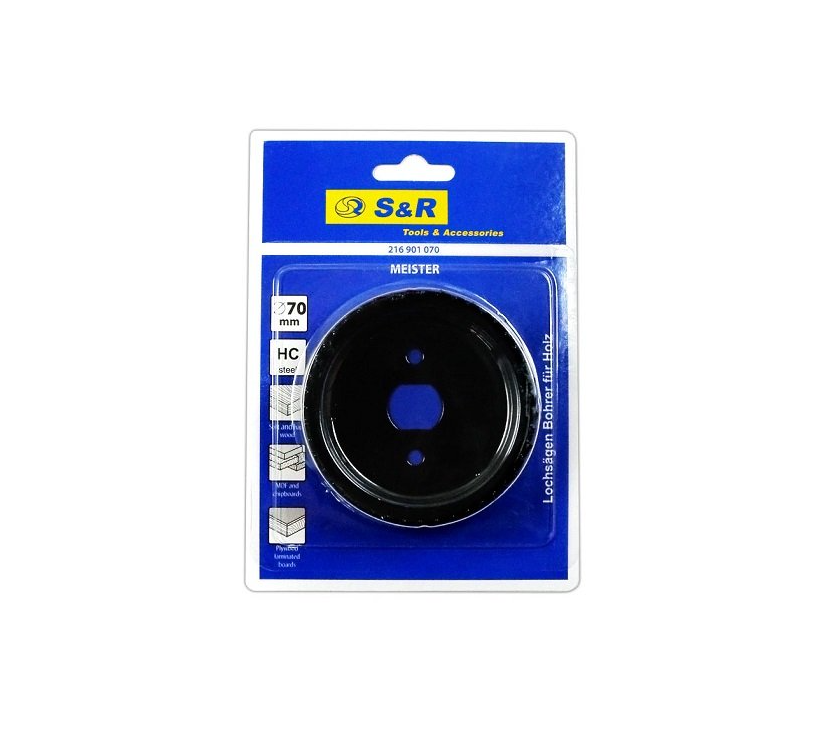 S&R Meister 70 мм – кольцевая пила для сверления отверстий в древесине. Кольцевая пила по дереву используется как в мебельной промышленности, так и в ремонте и строительстве. Кольцевая пила изготовлена и высокоуглеродистая сталь, благодаря чему обладает высокой прочностью и износостойкостью. Острозаточенные зубы с легкостью прорезают древесину, а также все деревосодержащие материалы: гипсокартон, фанера, ДСП, ДВП, МДФ. Цельность коронки обеспечивают отверстия ровные края. Кольцевая пила S&R Meister 70 мм позволяет быстро сверлить в древесине отверстия дрелью или другими сверлильными установками.Преимущества и гарантия