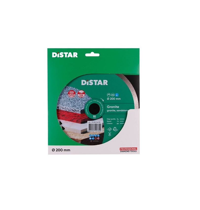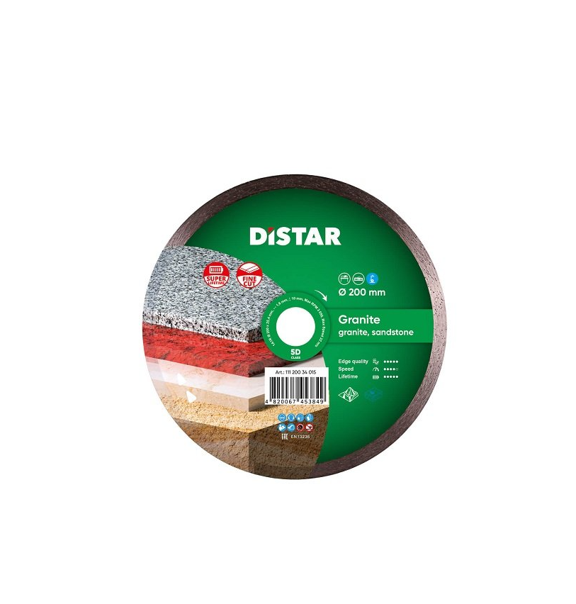 Di-Star Granite 200х25,4- диск с алмазным напылением для обработки всех видов гранита и песчаника. В редких случаях используется для керамогранита. Алмазное напыление толщиной 1,6 мм и высотой 10 мм обеспечивает качественный срез на профессиональном уровне. Изготовлен специально для профессиональной обработки камня плиткорезами.Преимущества и гарантия