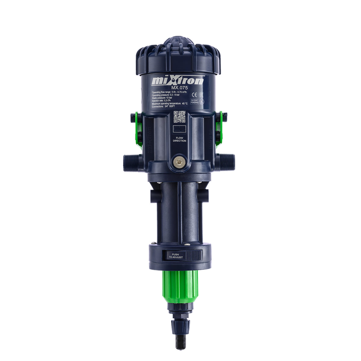 Mixtron MX.075.P022 - это высокоточный медикатор-дозатор, который работает исключительно на водяном давлении (от 0,3 до 6 бар) и не требует электропитания. Его гибкое соотношение дозирования в диапазоне 0,2 - 2% обеспечивает эффективное смешивание жидких препаратов с водой независимо от расхода.