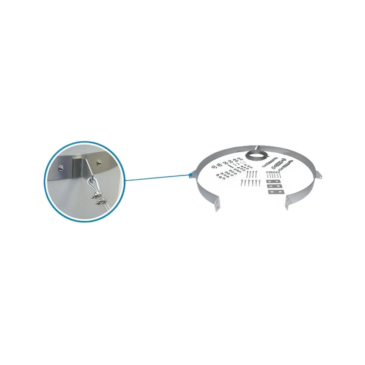 Укрепление от шторма Для защиты воздуховода от ветровых нагрузок. Комплект поставки: • Зажим из нержавеющей стали с проушинами • 15 погонных метров оцинкованного троса • Натяжные винты, тросовые кольца, тросовые зажимы (оцинкованные) Укрепление от шторма в указанной версии конструктивно рассчитано на ветровую зону 2 и высоту воздуховода 4 м. Для дополнительной стабилизации соединительных узлов необходимо использовать зажимы для воздуховодов.Преимущества и гарантия