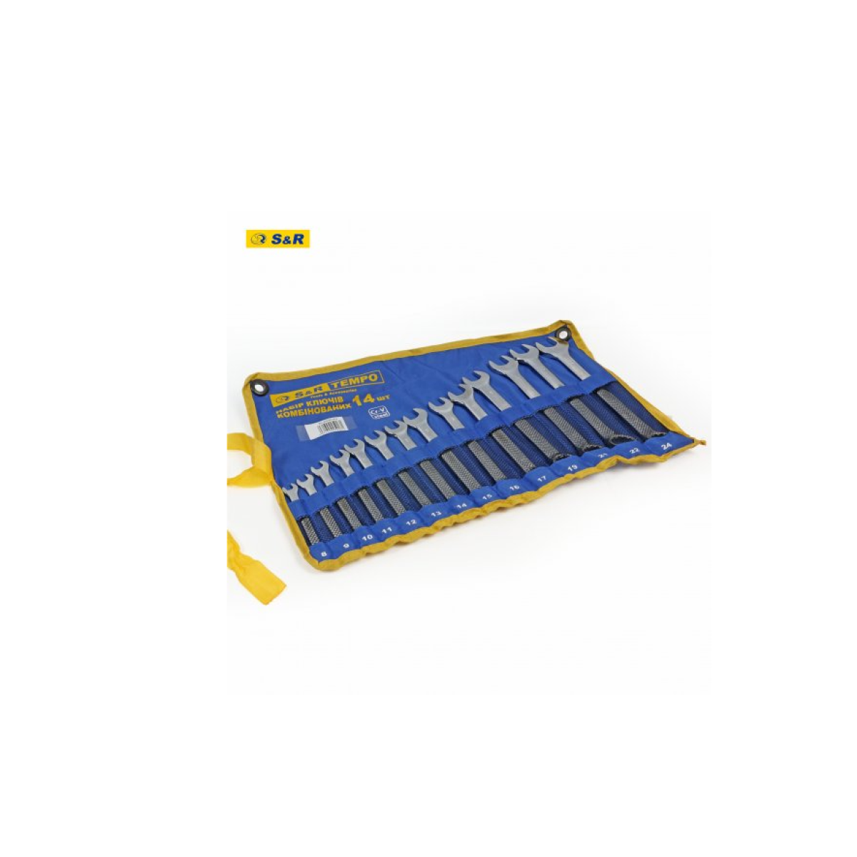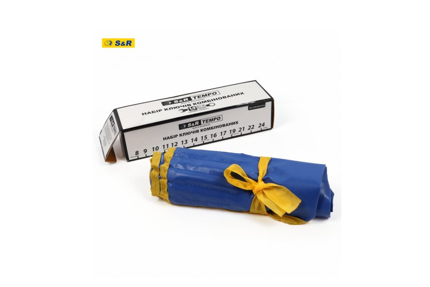 Набор ключей S&R Tempo 14 шт в тканевом свертке - предназначен для бытового и профессионального использования. Включает рожково-кидочные (комбинированные) гаечные ключи разных диаметров. Особенности набора ключей в тканевом чехле S&R Tempo 14 шт: Изготовлены ключи из прочной хром-ванадиевой стали по технологии холодной штамповки. Ключи в наборе – глянцевые. В наборе 14 ключей. Страна-производитель: Индия. Страна бренда: Германия. Комплектация: Ключи комбинированные прямые: 8, 9, 10, 11, 12, 13, 14, 15, 16, 17, 19, 21, 22, 24 мм; Чехол тканевый – 1 шт.Преимущества и гарантия