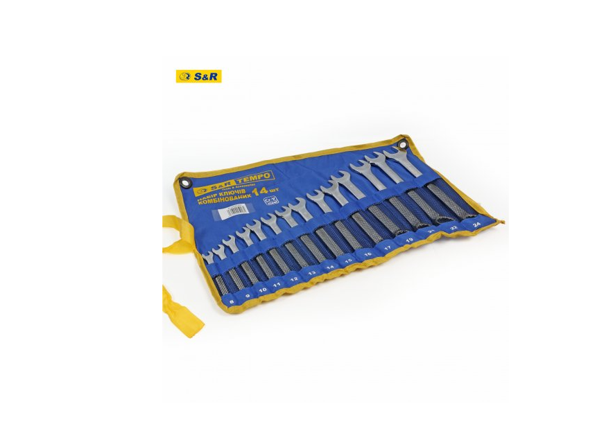 Вопросы Набор ключей 14 шт. (8-17,19,21,22,24 мм), CR-V глянцевые, в чехле S&R (670091014)