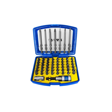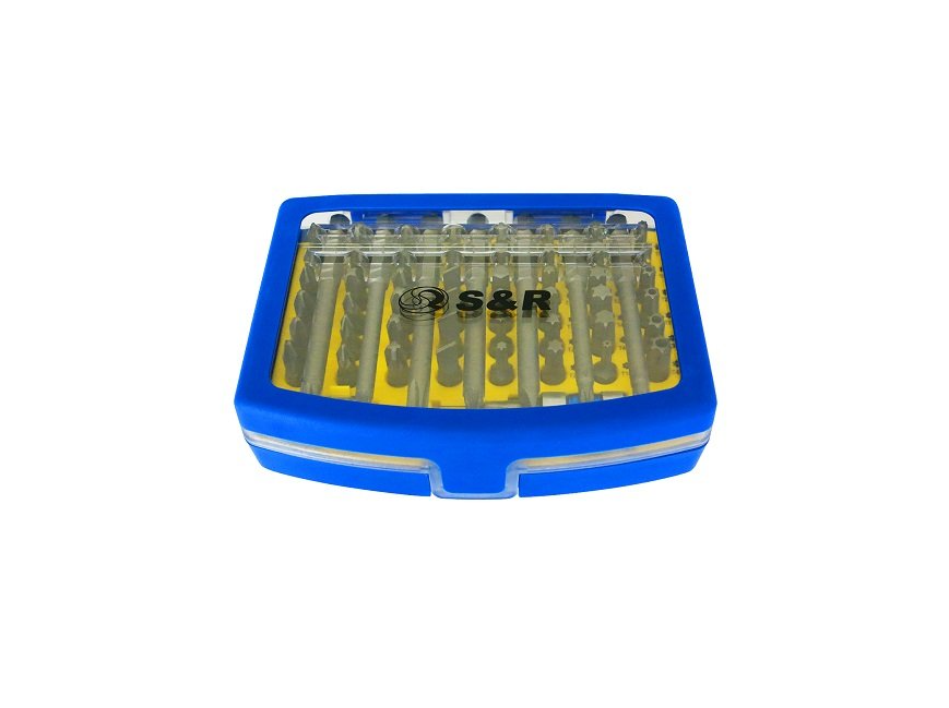 S&R 57 шт. - набор битов используется с битодержателем или шуруповертом для крепежных работ. Все насадки изготовлены из стали S2 с жесткостью 55-62 HRC, которая обеспечивает высокую стойкость инструмента к повреждениям и надежную работу в течение длительного времени. Набор состоит из множества бит с разным разъемом и длиной 25 и 75 мм, а также в наборе битодержатель и адаптер 1/4”. Набор бит S&R состоит из 54 предметов: Биты 25 мм: PH1-3шт., PH2-3 шт., PH3-3 шт.; Биты 25 мм: PZ1-3шт., PZ2-3 шт., PZ3-3 шт.; Биты 25 мм: SL4-2 шт., SL5-2 шт., SL6-2 шт.; Биты 25 мм: HX3, HX4, HX5; Биты 25 мм: TX10-2 шт., TX15-2 шт., TX20-2 шт., TX25-2 шт., TX27-2 шт., TX30-2 шт., TX40-2 шт.; Биты 25 мм: TXо10, TXо15, TXо20, TXо25, TXо27, TXо30, TXо40; Биты 75 мм: PH2, PH3; Биты 75 мм: PZ1, PZ2; Бито 75 мм SL6; Биты 75 мм: TX20, TX25; Адаптер для бит; Битодержатель 1/4”. Биты укомплектованы в компактный кейс с удобным расположением всех элементов набора, что обеспечивает быстрый поиск нужной насадки. Набор бит S&R 57 шт. для качественной работы по скреплению деревянных, металлических и пластиковых предметов с помощью шурупов разного диаметра и с разным шлицом.Преимущества и гарантия