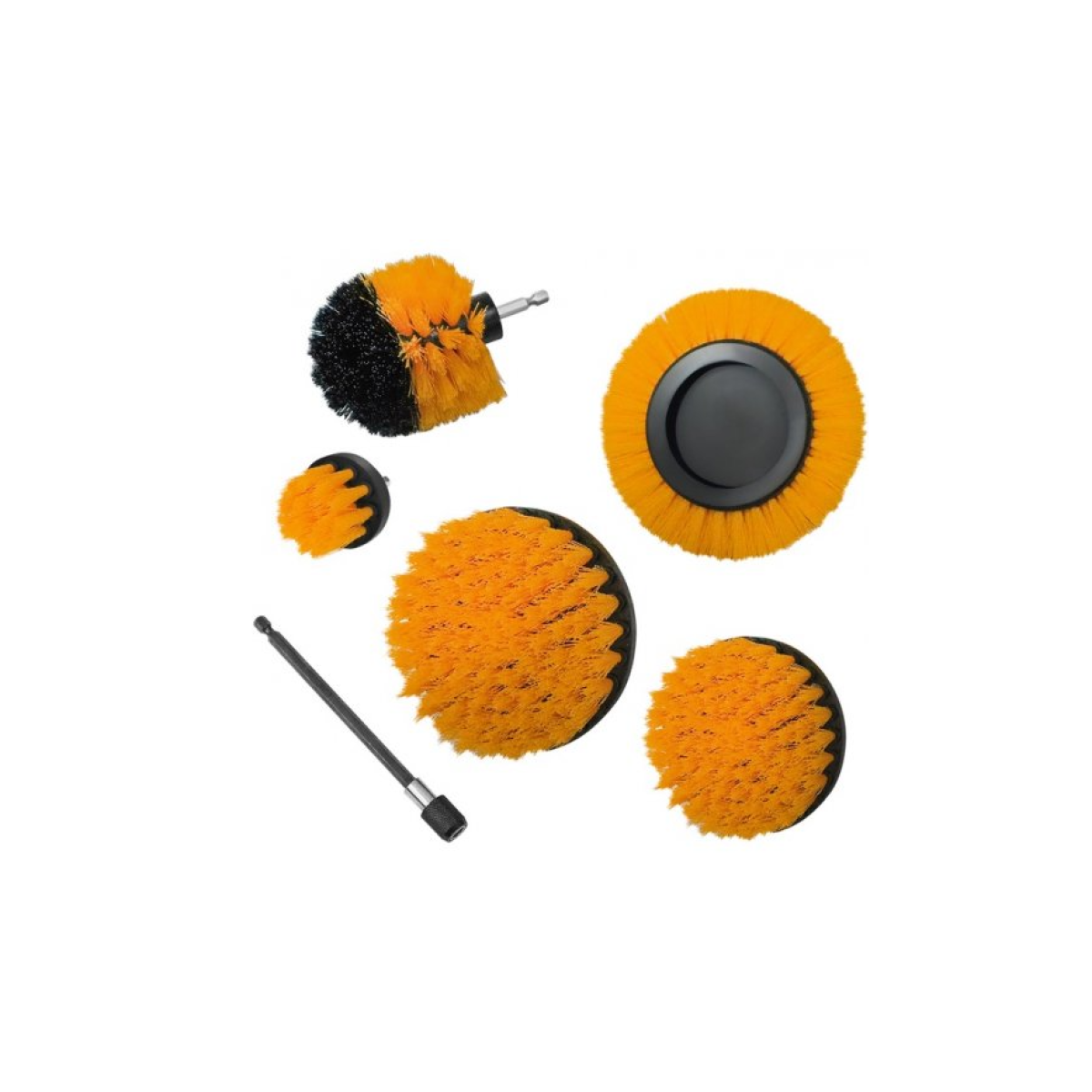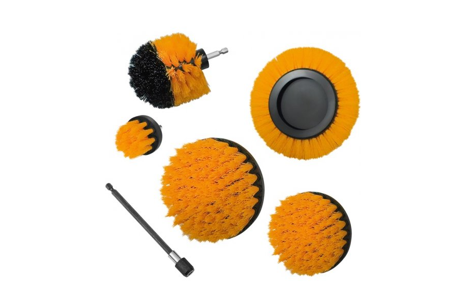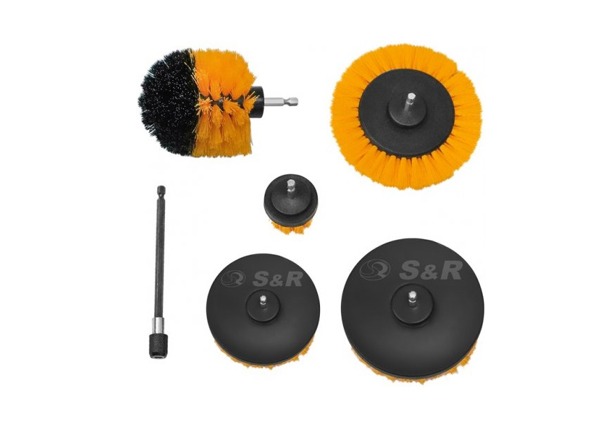 Отзывы Набор щеток 6 шт, желтые нейлоновые: прямая 51 мм, 102 мм, 127 мм дисковая 138 мм, круглая 83 мм, удлинитель 150 мм S&R (139002601)