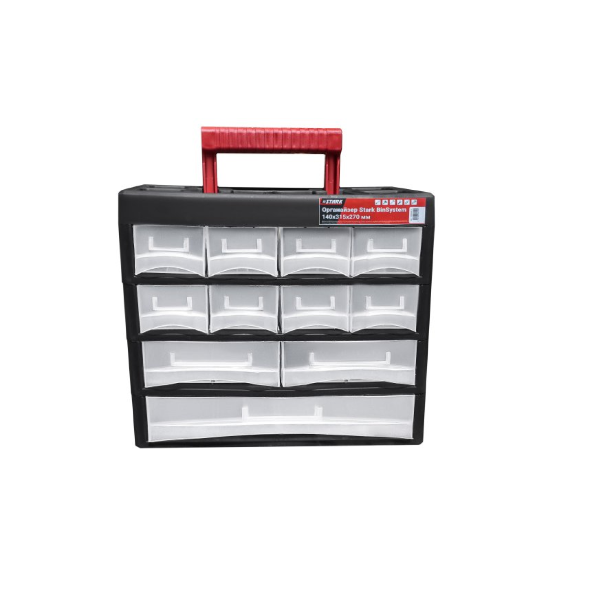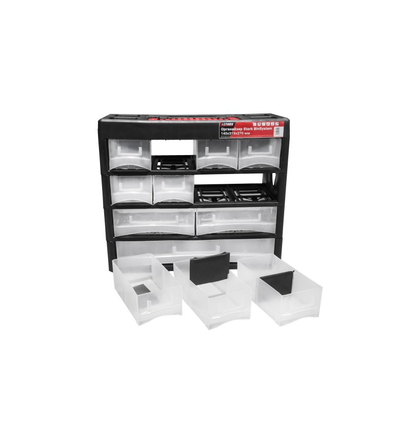 Характеристики Органайзер BinSystem 16,5" (140x315x270мм) с выдвижными лотками, 11 отделений STARK (100006419)