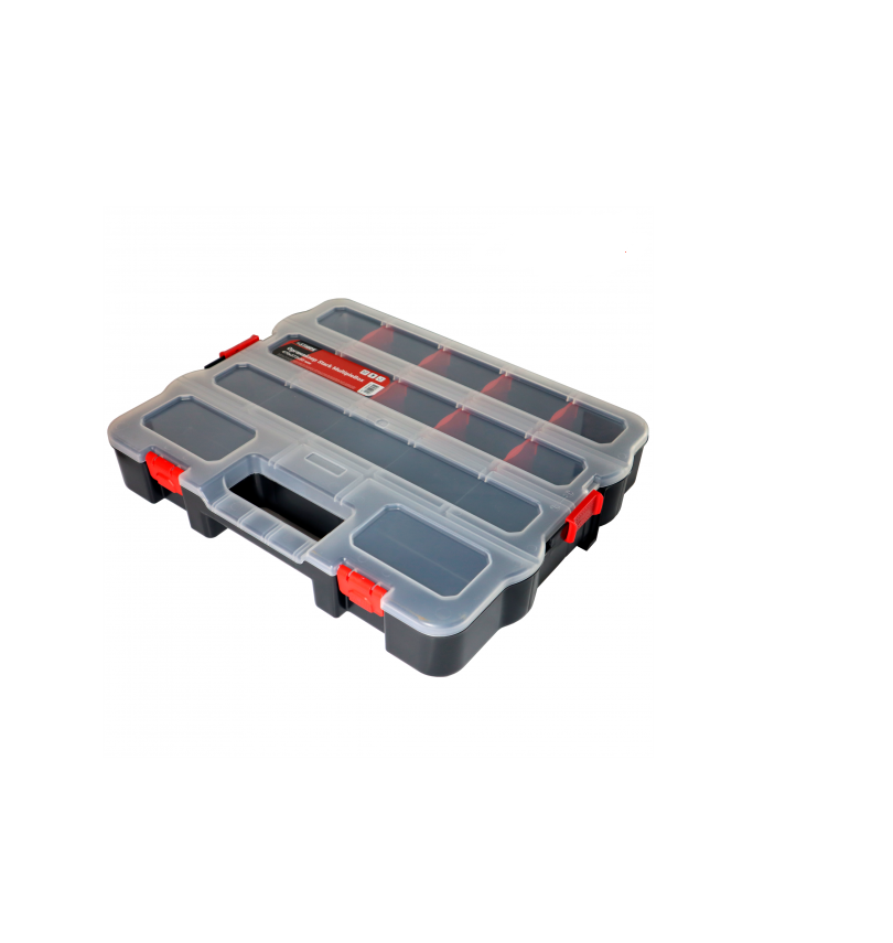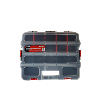Органайзер Stark MultipleBox 470x373x80 мм – система хранения мелких деталей, креплений, инструментов и других небольших предметов. Имеет форму кейса. Внутри находятся длинные отсеки, которые пользователь по своему усмотрению может разделить специальными перегородками (входят в комплект поставки). Другие особенности органайзера для инструментов Штарк MultipleBox 470x373x80 мм: Модель имеет 18 небольших отделений, которые пользователь может объединять между собой как угодно – путем извлечения разделяющей перегородки. Изготовлен из прочного пластика. Крышка выполнена из прозрачного пластика, чтобы пользователь мог быстро находить нужный инструмент, не открывая органайзер. Органайзер закрывается с помощью широких пластиковых защелок, которые надежно удерживают крышку и инструмент внутри органайзера. В органайзере есть широкое отверстие-ручка для удобства транспортировки. По бокам расположены дополнительные защелки - для объединения нескольких (2-3) таких органайзеров в единую систему хранения. Соединенные органайзеры можно легко перевозить, взяв за встроенную ручку. При хранении соединенные органайзеры занимают меньше места. Габариты: 470х373х80 мм. Масса - 1,192 кг.Преимущества и гарантия