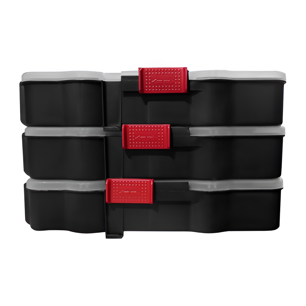 Органайзер Stark MultipleBox – система хранения мелких деталей, крепежей, инструментов и других небольших предметов. Имеет форму кейса. Внутри находятся длинные отсеки, которые пользователь по своему усмотрению может разделить специальными перегородками (входят в комплект поставки). Другие особенности органайзера для инструмента Штарк MultipleBox 389x310x67 мм. Изготовлен из прочного плединиастика. Крышка выполнена из прозрачного пластика, чтобы пользователь мог быстро находить нужный инструмент, не открывая органайзер. Органайзер закрывается с помощью широких пластиковых замков, которые надежно удерживают крышку и инструмент внутри органайзера. В органайзере есть широкое отверстие-ручка для удобства транспортировки. По бокам расположены дополнительные замки для объединения нескольких (2-3) таких органайзеров в единую систему хранения. Соединенные органайзеры можно легко перевозить, взяв за встроенную ручку. При хранении соединенные органайзеры занимают меньше места, чем разрозненные.Преимущества и гарантия