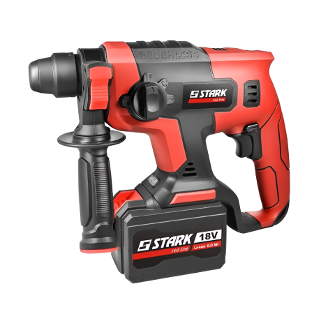 tark CRH-1800 B Body - аккумуляторный перфоратор для сверления, долбления и сверления с ударом отверстий в бетоне, кирпиче, металле, древесине и т.п. Stark CRH-1800 B Body не комплектуется аккумулятором и зарядным устройством. Достоинства аккумуляторного перфоратора Stark CRH-1800 B Body. Оборудованный безщеточным двигателем, не требующим технического обслуживания, а также пониженный уровень трения обеспечивает более эффективное потребление энергии. Есть возможность регулировать обороты и скорость ударов для работы с разным типом материала. Встроенная LED подсветка для эффективной работы в плохо освещенном помещении и труднодоступных местах. Благодаря стальному редуктору перфоратор выдерживает тяжелые нагрузки с максимальным количеством ударов до 4500 об/мин. D-образная основная рукоятка обеспечивает надежный захват инструмента. Дополнительная рукоятка устанавливается в разные положения для удобной работы перфоратором в любых условиях. Прорезиненные накладки на рукоятках уменьшают вибрацию и нагрузку на руки. Аккумуляторный перфоратор Stark CRH-1800 B Body комплектуется. Дополнительная рукоятка. Аккумуляторный перфоратор Stark CRH-1800 B Body для мобильной работы в процессе ремонта, строительства и других нужд.Преимущества и гарантия