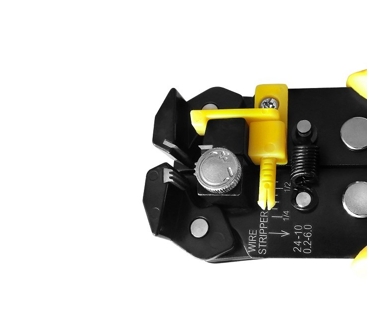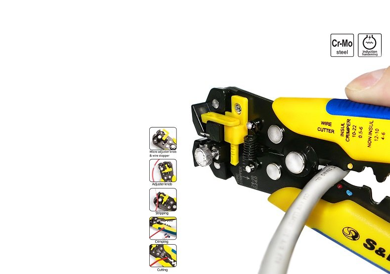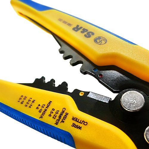 S&R 5 в 1 205 мм – универсальный инструмент для работы с проводами, сочетающий в себе стрипер – автоматический съемник изоляции, и кромепер – для обжима клемм. Используется электриками, а также для ремонта электронных устройств, компьютеров и другой техники. Губки изготовлены из хром-ванадиевой стали и прошли индукционную закалку, благодаря чему обладают высокой прочностью, длительным сроком службы, а также хорошей заточкой для точного снятия изоляции. Подходит для работы с проводами диаметром 0,2-0,6 мм2, а также для клемм 0,5-6,0 мм2. Регулировка диаметра для снятия изоляции выполняется за счет специальной гайки. Удобные прорезиненные рукоятки облегчают нагрузку на руки в процессе зажима, не скользят для качественной и безопасной работы.Преимущества и гарантия