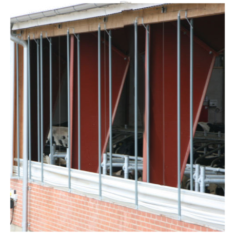 Изготовлена из прочного, устойчивого к ультрафиолетовому излучению полиэстера с ПВХ-покрытием и оптимальным светопропусканием. Антистатическая поверхность отталкивает грязь (солому, песок, пыль). Система MFP оснащена системой натяжения троса из нержавеющей стали, которая приводится в движение вертикально с помощью ручного привода, лебёдки или мотор-редуктора. Редукторный двигатель работает либо вручную с помощью ручного контроллера, либо полностью автоматически, с индивидуальной настройкой степени раскрытия системы климат-контроля Munters Natural Center/Master и опционального датчика ветра и дождя. Штора открывается сверху вниз, складывается продольно и плотно прилегает к стене или цоколю в полностью раскрытом состоянии.Преимущества и гарантия