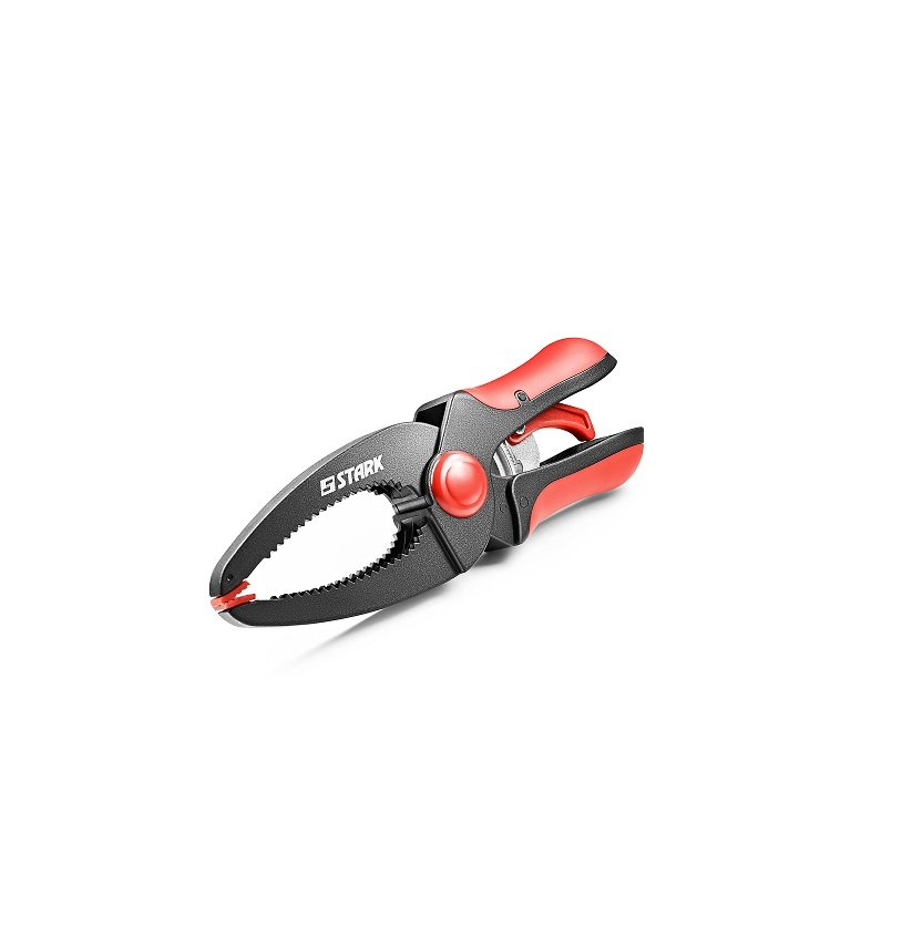 Stark 58x170 мм - ручная струбцина Трещеточная для зажима и фиксации различных заготовок, деталей, изделий из пластмассы, металла, стекла, дерева и др. Губки струбцины оборудованы мягкими прорезиненными накладками, которые позволяют использовать инструмент с различными поверхностями, не боясь их поцарапать или, как или, повредить. Губки раскрываются на 58 мм. Оборудована трещоточным механизмом, благодаря чему при зажиме нет необходимости прилагать много усилий, а также губки надежно фиксируются в любом положении. Снять струбцину очень легко с помощью специальной клипсы, которой можно управлять одним пальцем. Удобные рукоятки для надежного захвата инструмента.Преимущества и гарантия