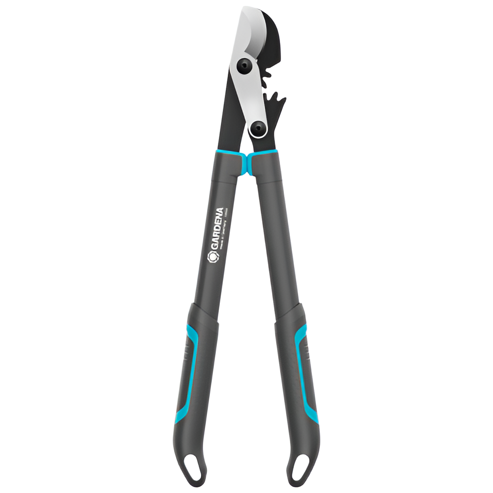 Сучкорез Gardena EnergyCut Pro S 50 мм - очень легкий ручной инструмент, предназначенный для обрезки живых веток диаметром до 50 мм. Главной особенностью этой модели является наличие зубчатой передачи, которая позволяет увеличить передаваемые усилия в 3 раза. Таким образом даже очень толстые ветви пользователь сможет легко обрезать. Другие преимущества сучкореза Гардена EnergyCut Pro S 50 мм. Сучкорез обводного типа (Bypass) - имеет 2 остро заточенных сменных лезвия, которые обеспечивают ровный, аккуратный рез. Лезвия выполнены из прочной стали, имеют специальное покрытие PowerCoating (препятствует налипанию коры, листьев/обеспечивает защиту от образования коррозии). Изготовлен из прочных и легких материалов (алюминий, пластик), благодаря чему его масса составляет всего 1135 граммов. Рукояти эргономичной формы изготовлены из пластика, со специальным фактурным рисунком (для снижения вероятности скольжения рук во время использования). На концах рукоятки имеют отверстия - для хранения инструмента на крючке.Преимущества и гарантия